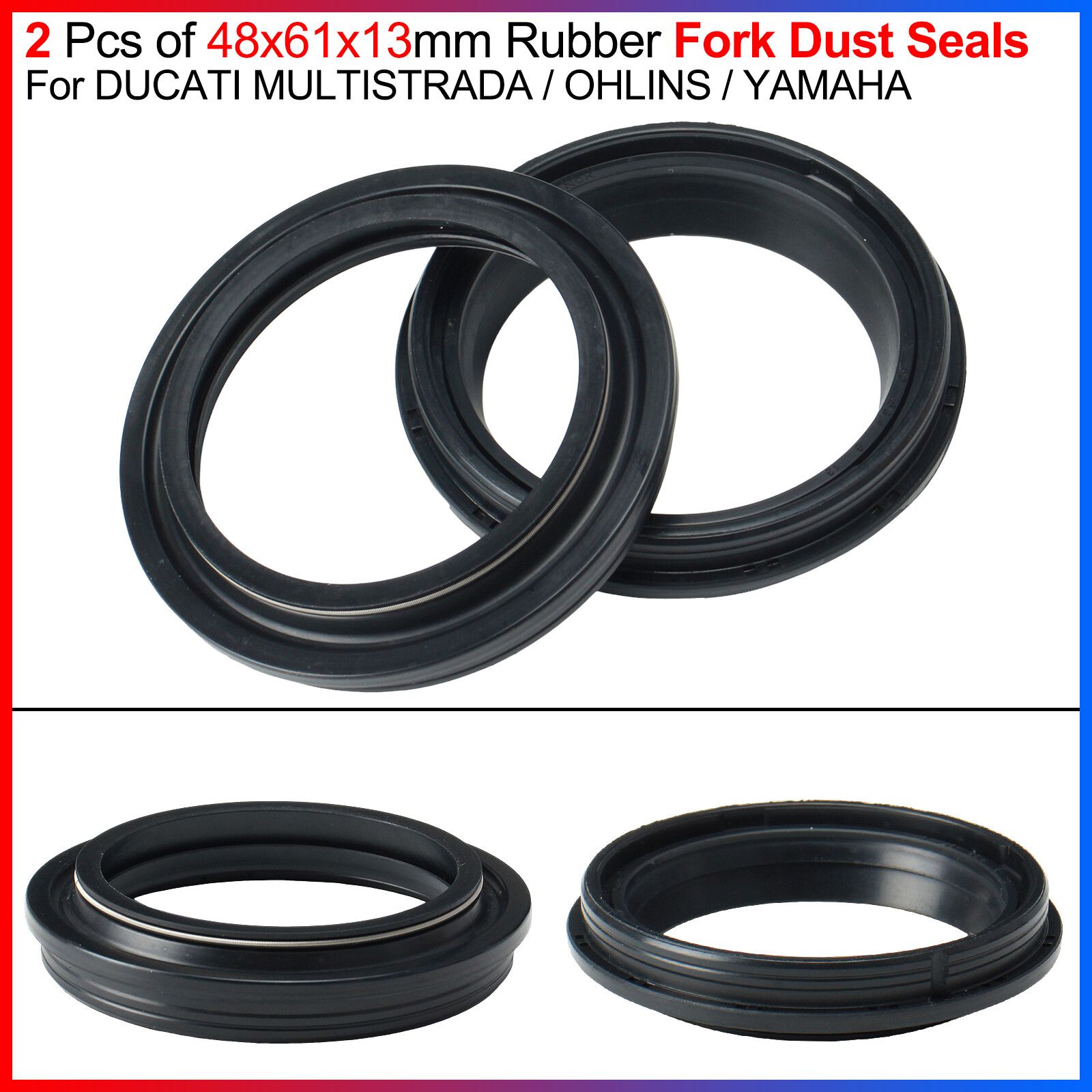 2 Pcs of Rubber Fork Dust Seals 48x61x13mm For DUCATI MULTISTRADA/OHLINS/YAMAHA