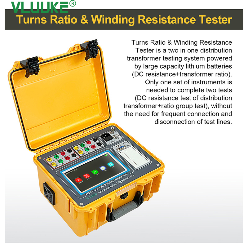 At present, distribution transformer DC resistance tests, transformer ratio group tests are must-test items of transformer interruption maintenance. To complete the above detection and operation, the transformer DC resistance tester, transformer ratio group tester, loop resistance tester need to be prepared. The Two instruments should be carried for every test. For they’re five independent instruments, each instrument is equipped with specified test wires, which requires separate testing and frequently changing wiring connection, thus wasting a lot of manpower, materials and time.