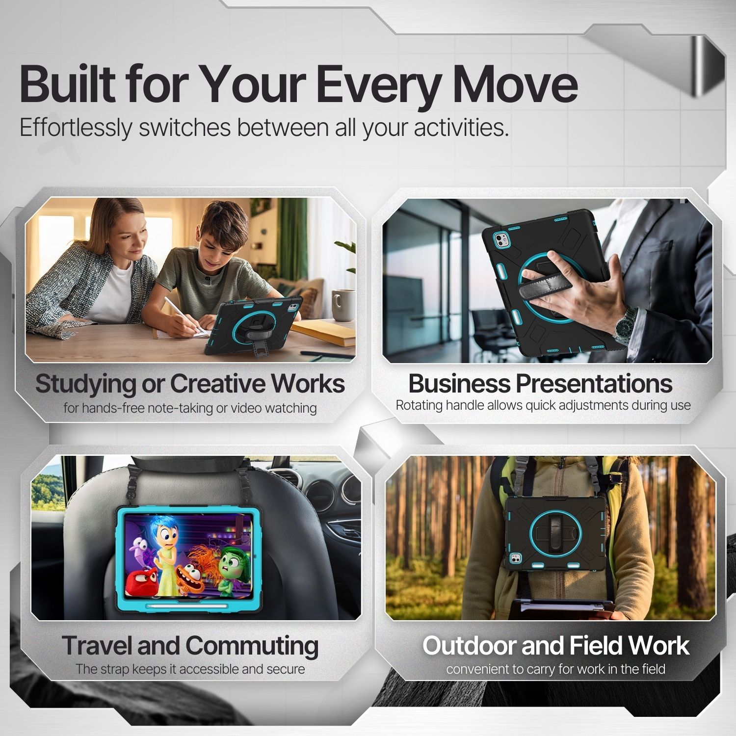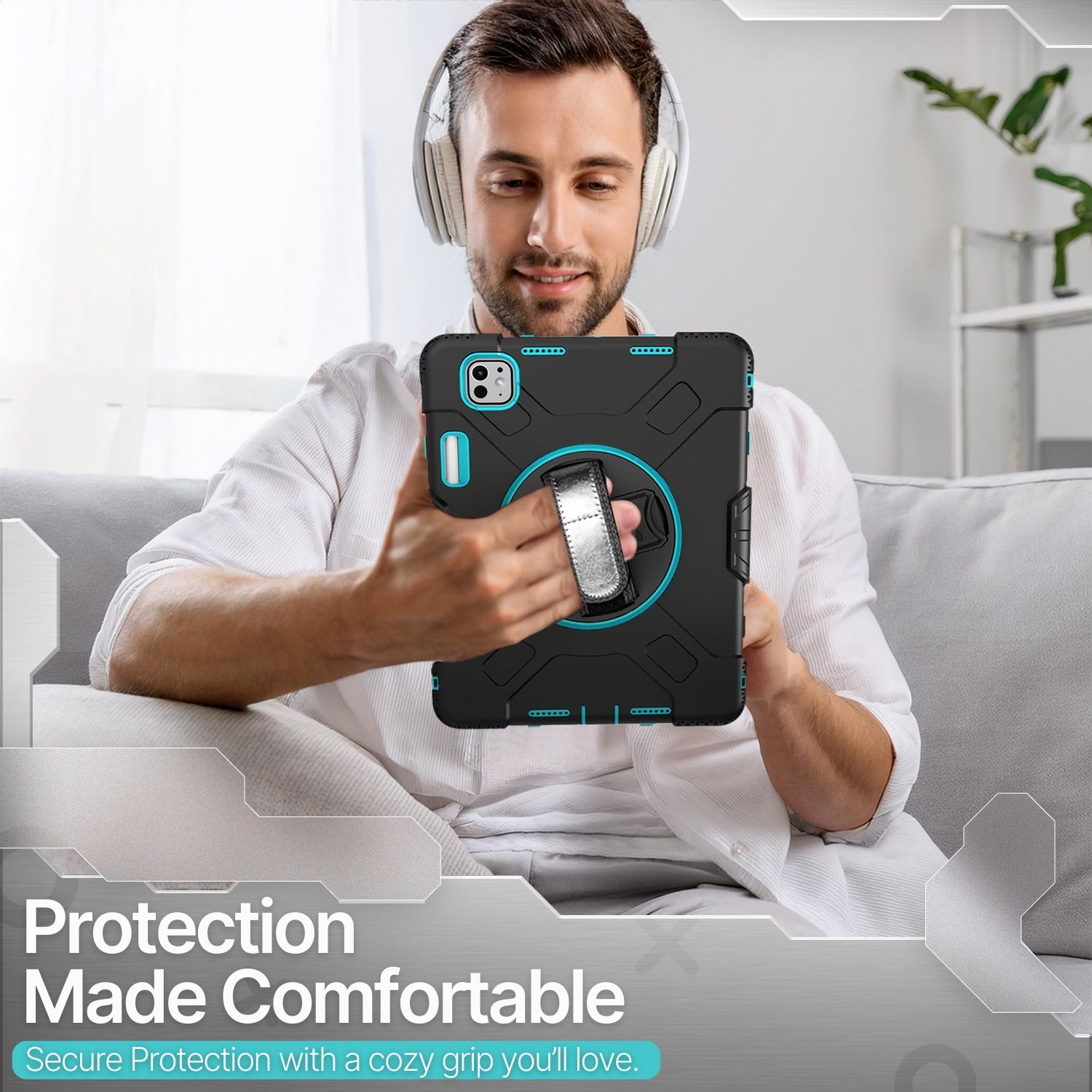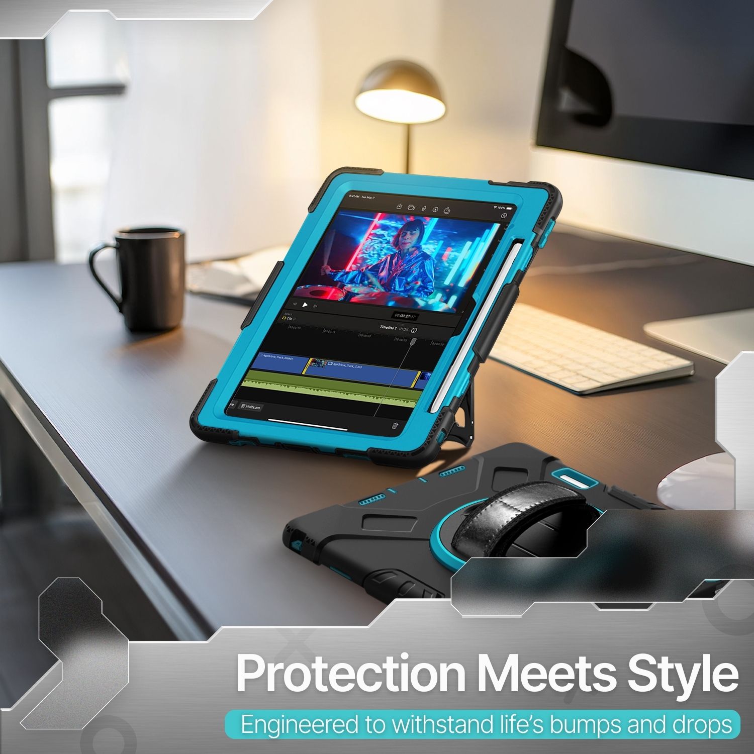 Keep your tablet pristine for as long as possible with our protective and functional case for iPad Pro 13 Inch 7th Generation 2024 (A2925, A2926, A3007). Our case is extra robust and sturdy, holding against any potential damage. This case cover for iPad Pro 13" 7th Gen features a heavy-duty 3-layer protection shell and 360-degree rotating hand strap and kickstand. Allows one-hand grip and comfortable vertical and horizontal viewing angles. It has an adjustable shoulder strap and pencil holder, perfect for on-site work, outdoors, and travels. This protective case will protect your device without worrying about accidental drops, bumps, and scratches.Feature: