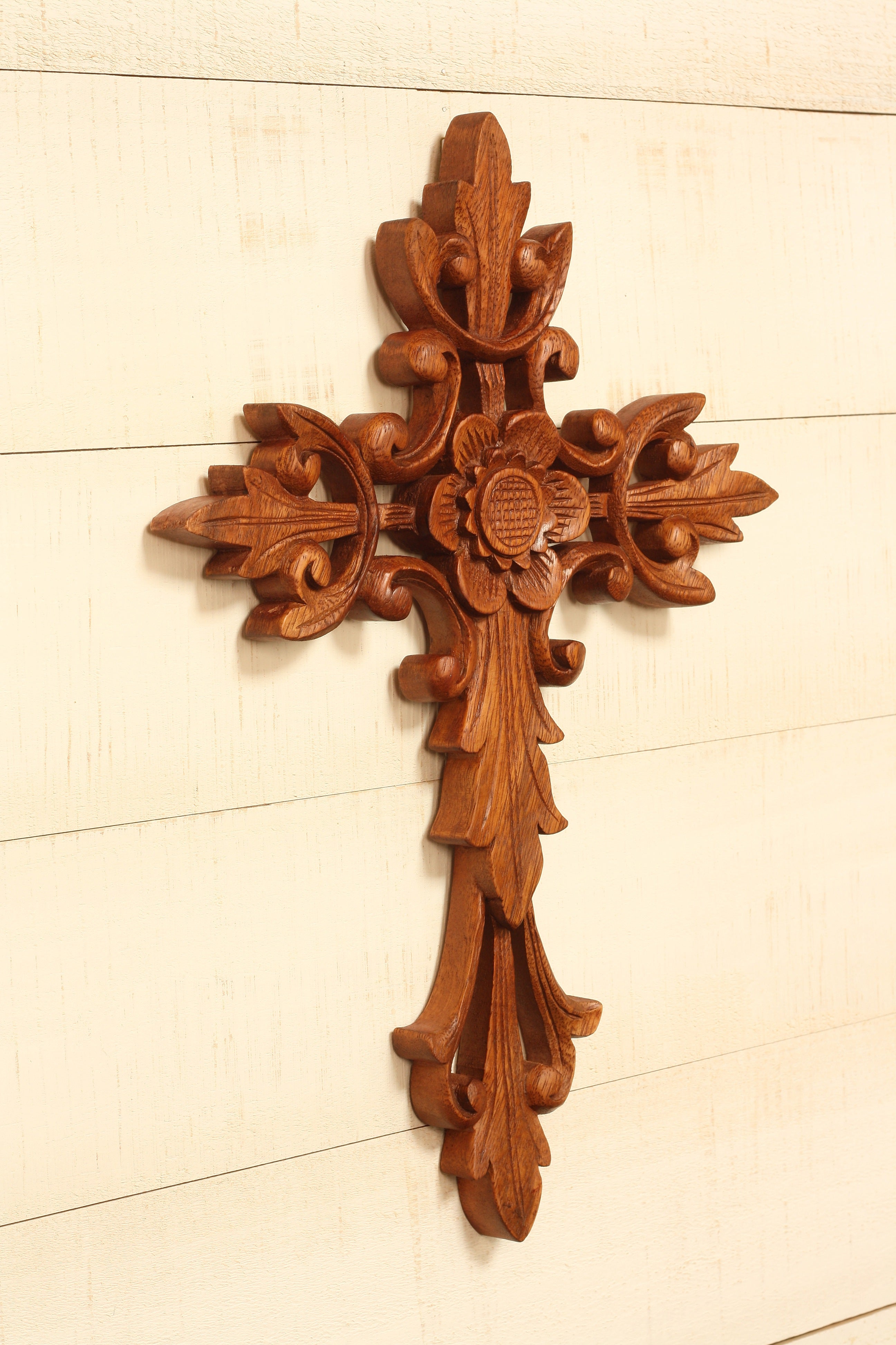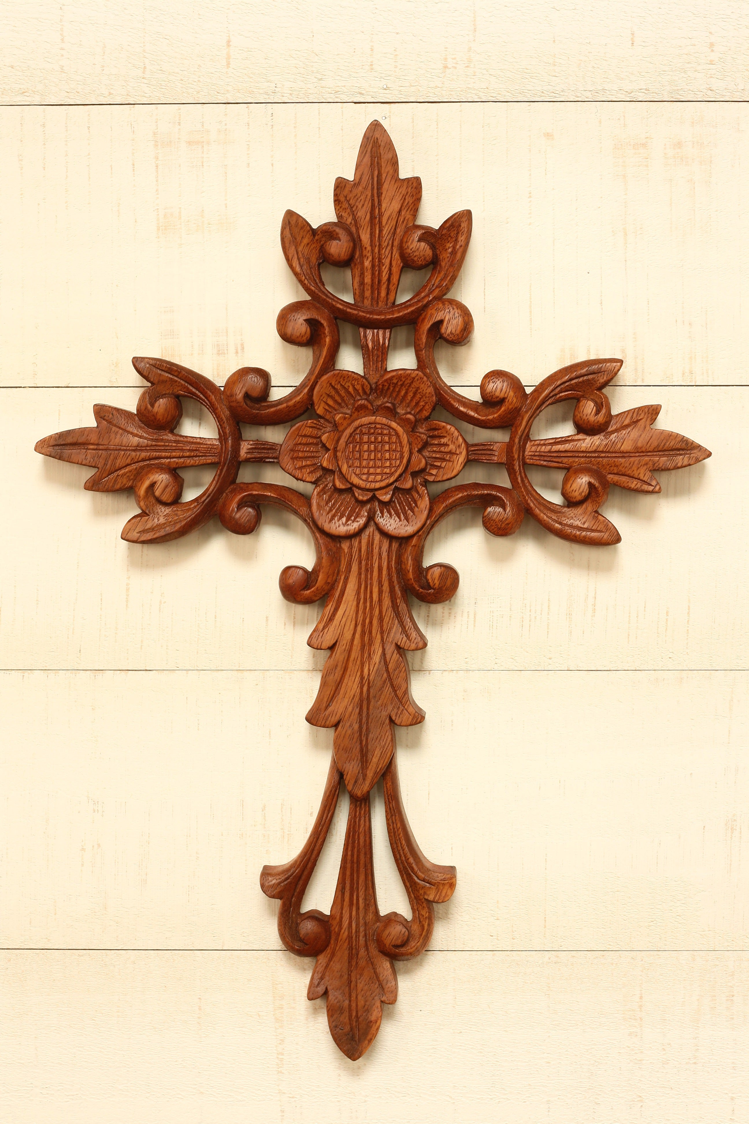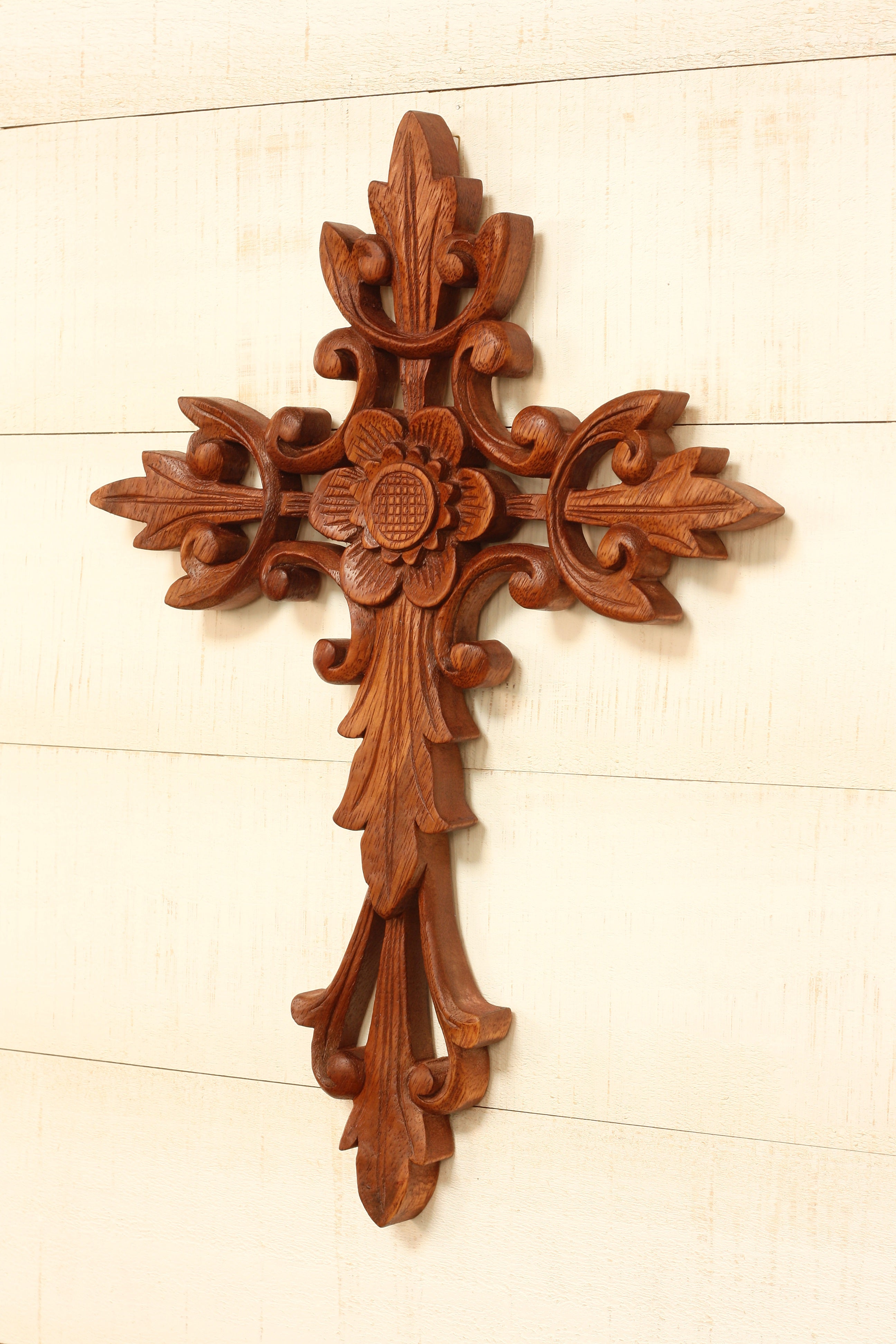Cherish your Christian roots and proudly show your devotion to the Lord with this stunning hand-carved cross. This wall plaque relief panel richly details the cross entwined with floral elements for a beautiful way to bring blessings into your personal spaces.