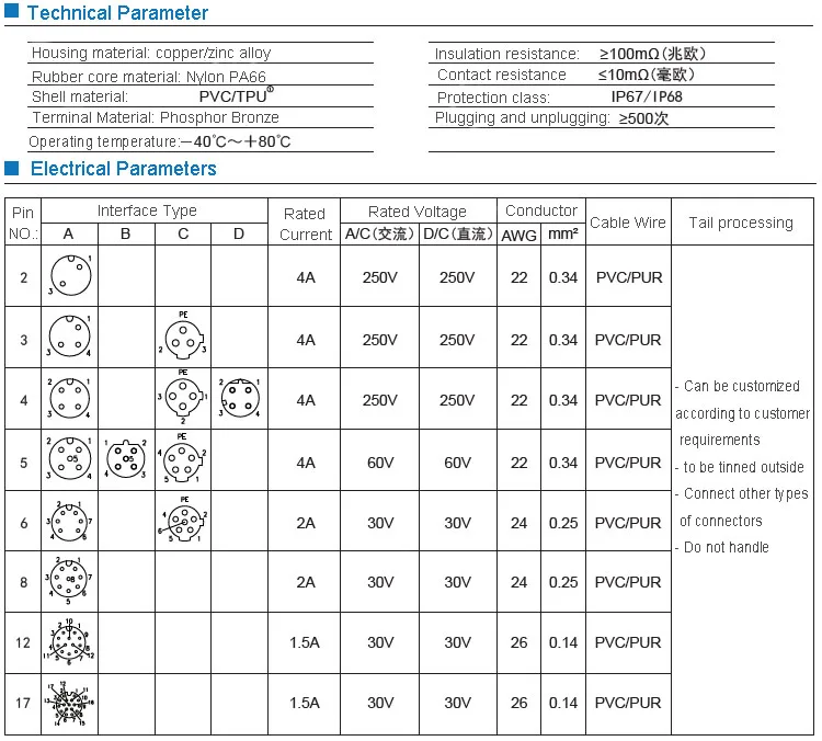 M12 Y Connector 3 4 5 6 8 Pin Male to Female