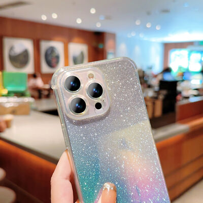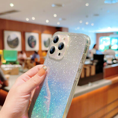 Bling Glitter Rubber Gradient Back Case For iPhone 16 15 14 13 12 11 Pro Max