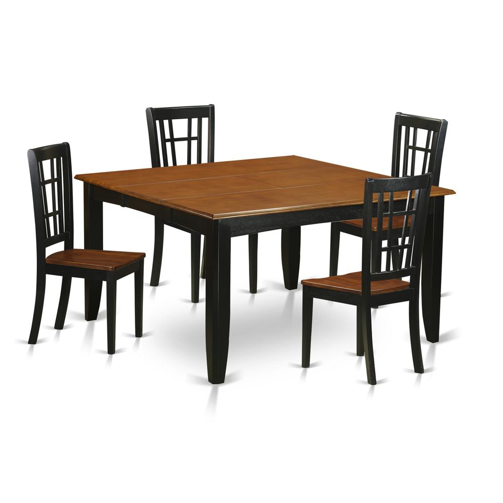 | Package Includes | This 5 piece dining set Includes dining table and 4 wood seat dining room chairs finished in Black and Cherry |