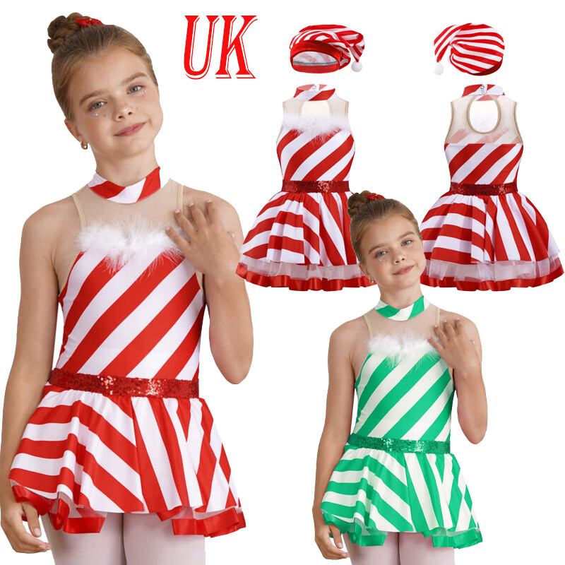Kids Girls Santa Claus Role Play Costume Patchwork Tutu Dress With Hat Belt