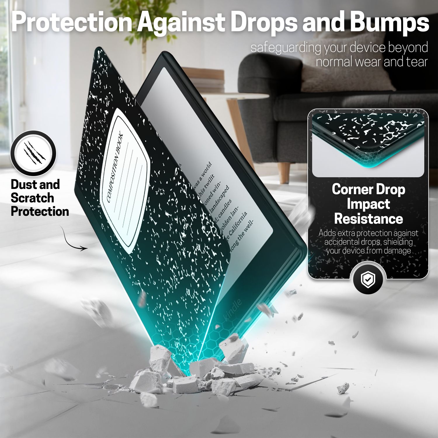 Slim, form-fitting cover to perfectly fit your Kindle Paperwhite (12th Generation) and Kindle Paperwhite Signature Edition to provide full front and back protection. The cover is easy to securely attach, remove, and folds back for easy one-handed reading. It automatically puts your Kindle to sleep when closed and wakes upon opening, making it easy to jump back into your book. Made of durable synthetic leather, this case is designed to be lightweight and protective, protect your device without adding unnecessary bulk, so you can hold it for hours of reading with minimal effort. With the nylon woven interior, the cover protects your Kindle and keeps the screen clean without adding bulk, making it perfect for taking your Kindle wherever you go.Feature: