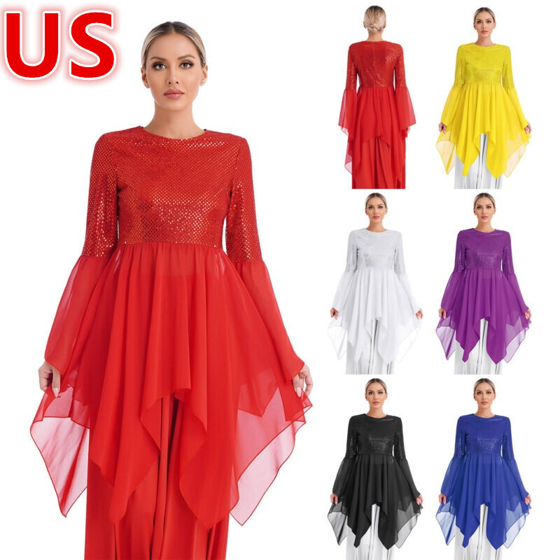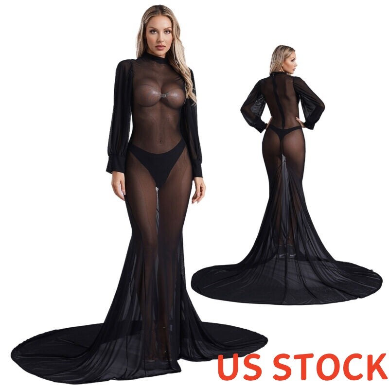 Asymmetrical design, one is adjustable spaghetti strap, and the other is long sleeve with bell bottom. Hidden side zipper closure.