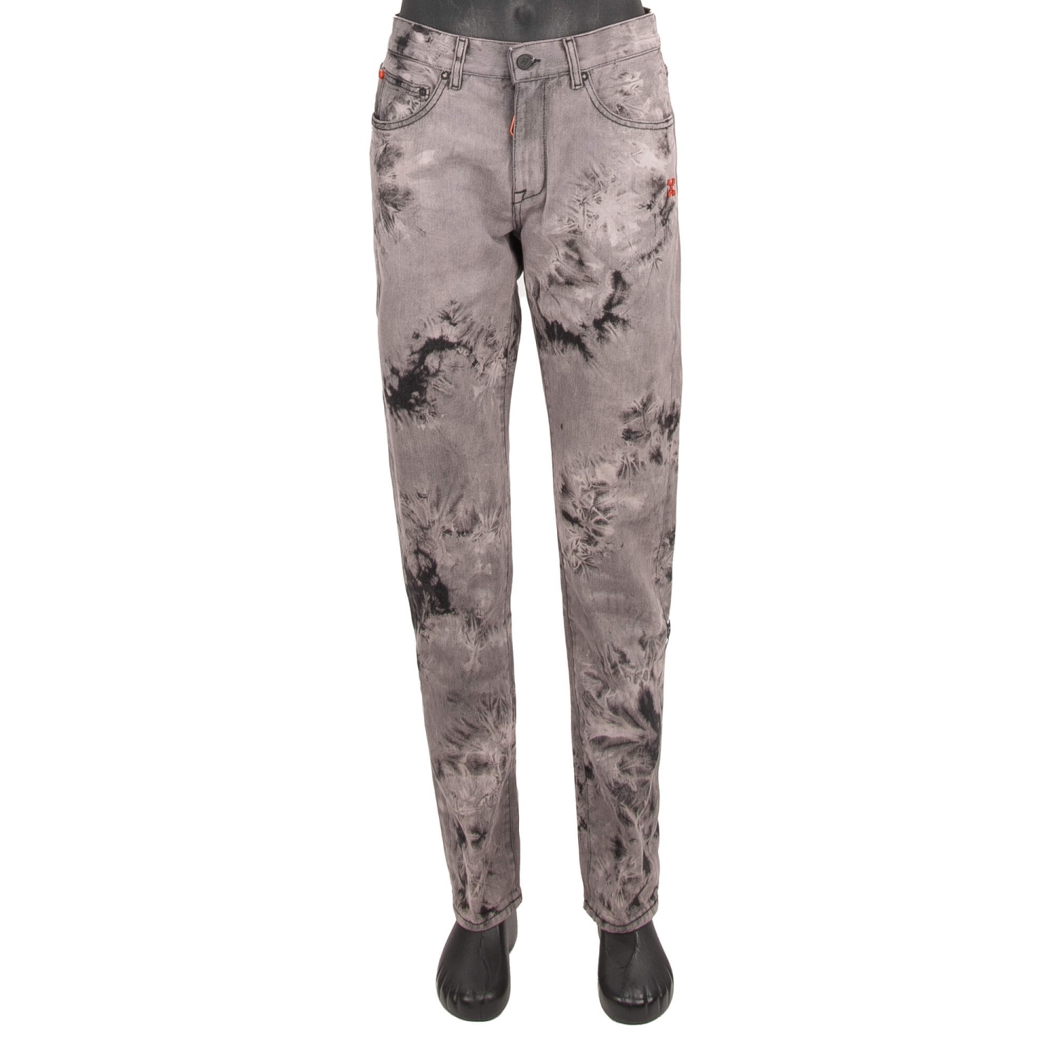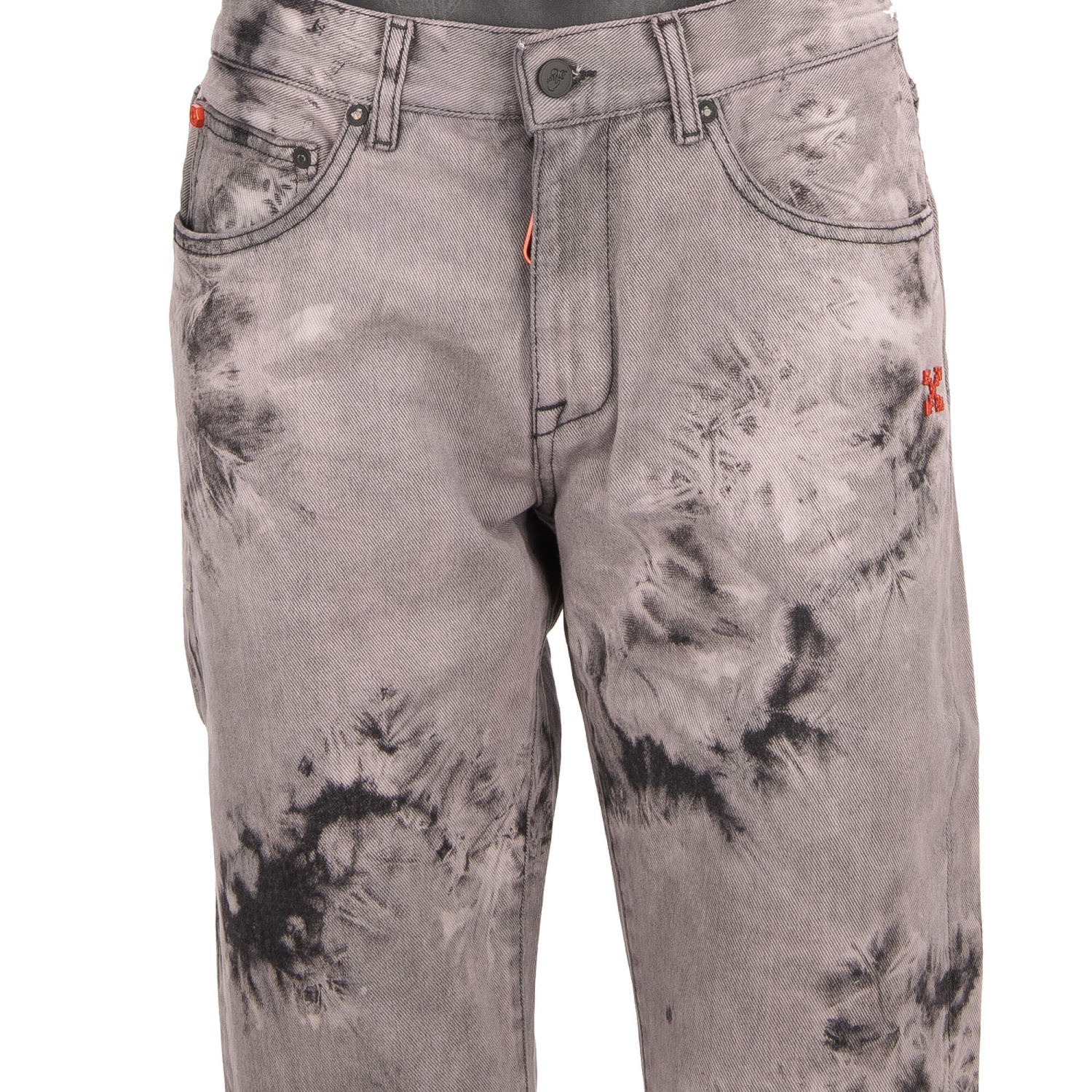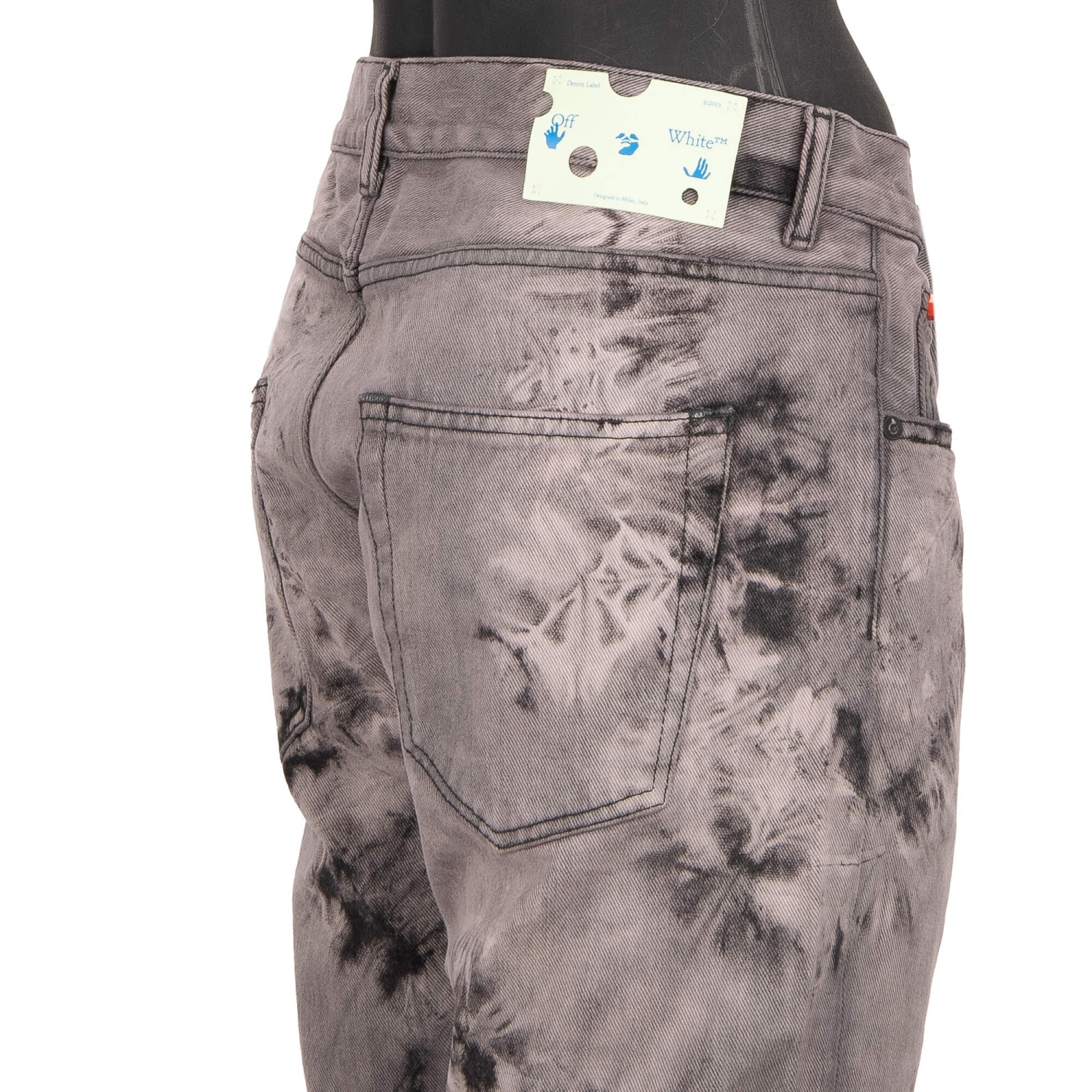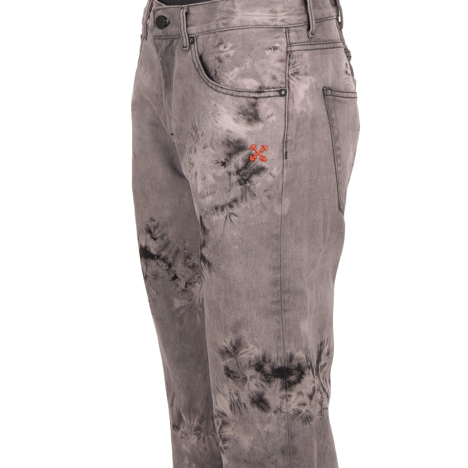 - 5-pockets Tie Dye Slim Jeans with logo sign in gray and black by OFF-WHITE c/o Virgil Abloh