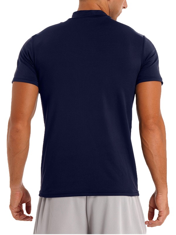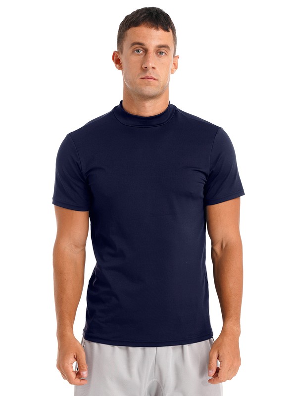 Slim fit t-shirt, solid color, basic design, mock neck, short sleeve, simple and casual.