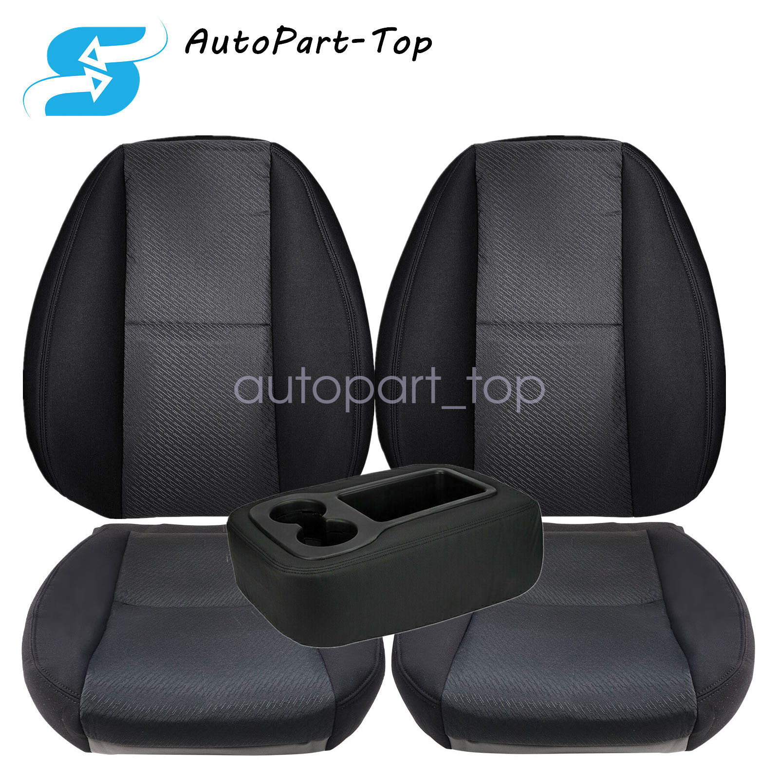 Replacement For 2007-2014 Chevy Silverado GMC Sierra 1500 2500 3500 HD Driver & Passenger Side Replacement Cloth Bottom & Lean Back Seat Cover & Leather Console Armrest Cover Black
