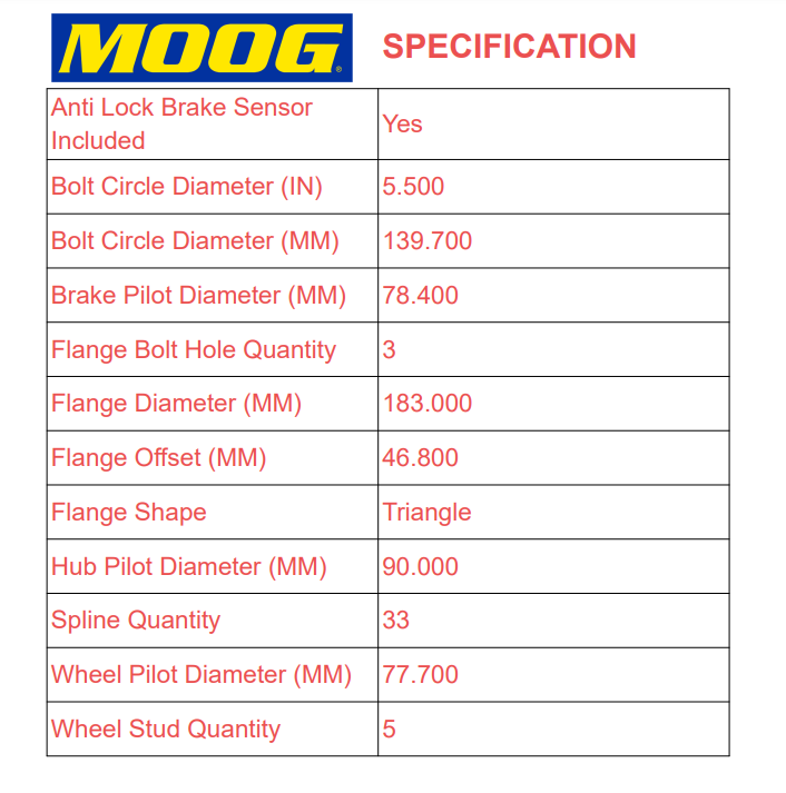 MOOG New Complete Front Wheel Hub and Bearing Assembly - 515151