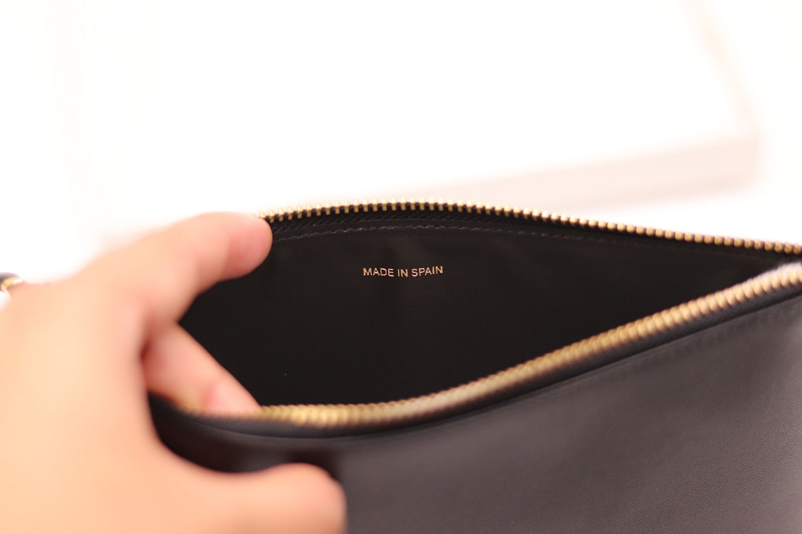 material: cow leather internal details: leather lining colour of fastening: antique gold zipped top