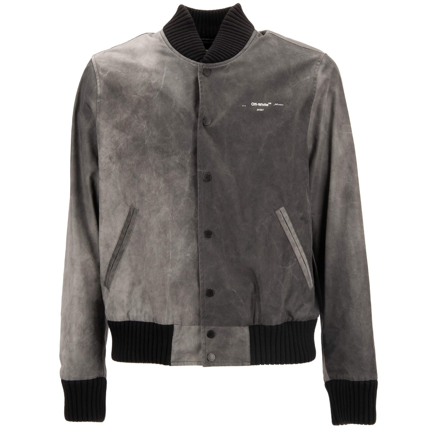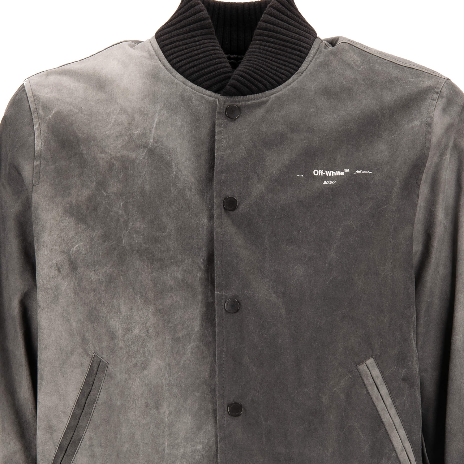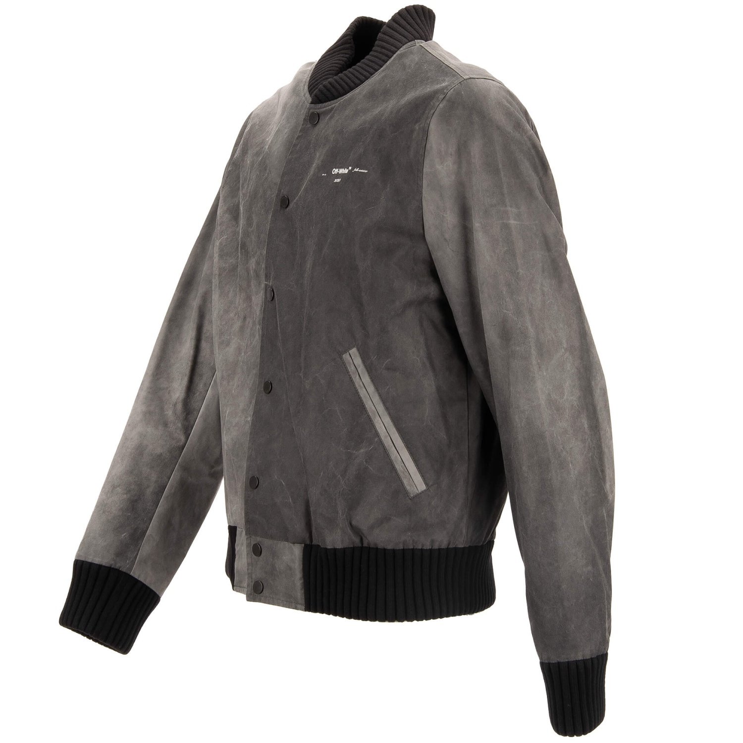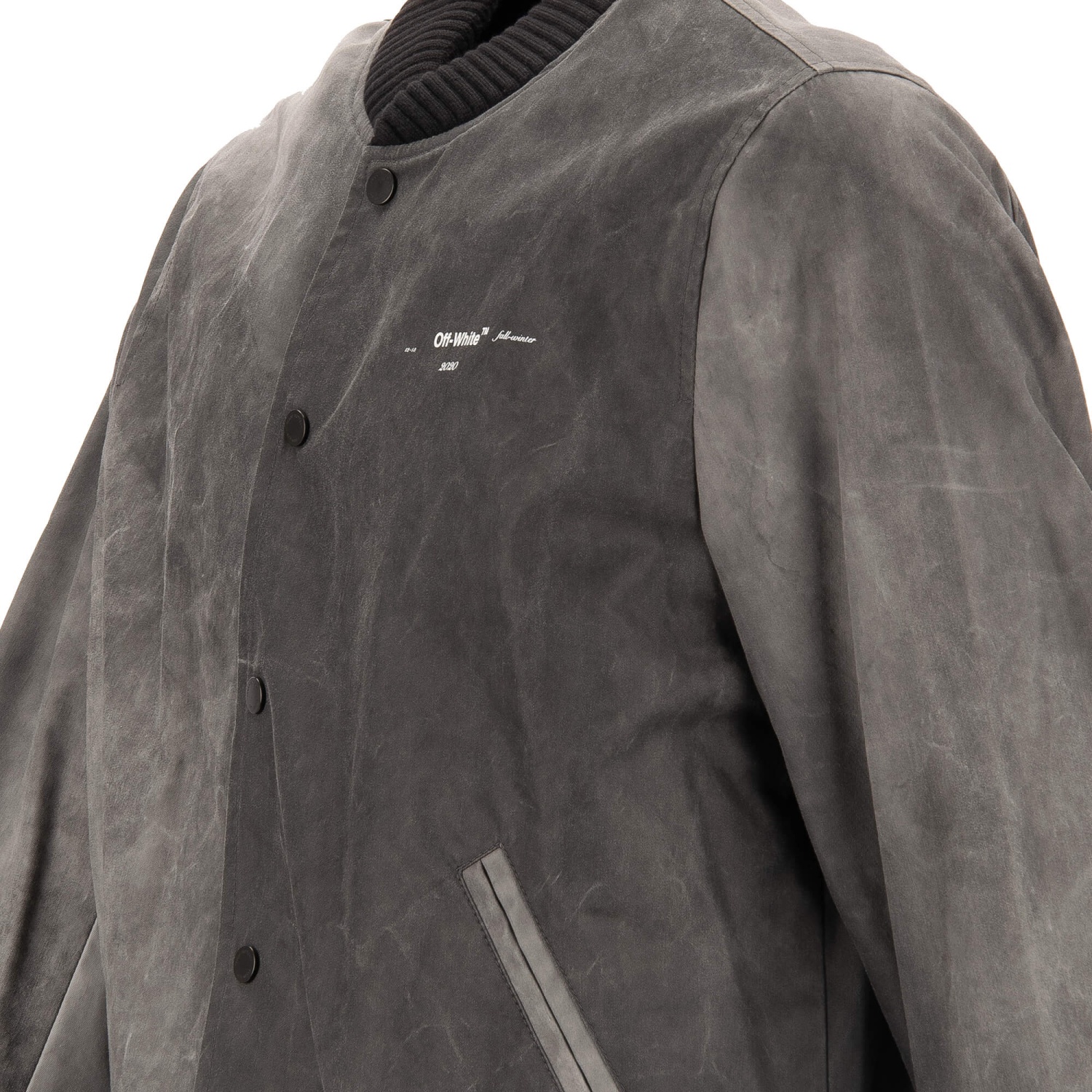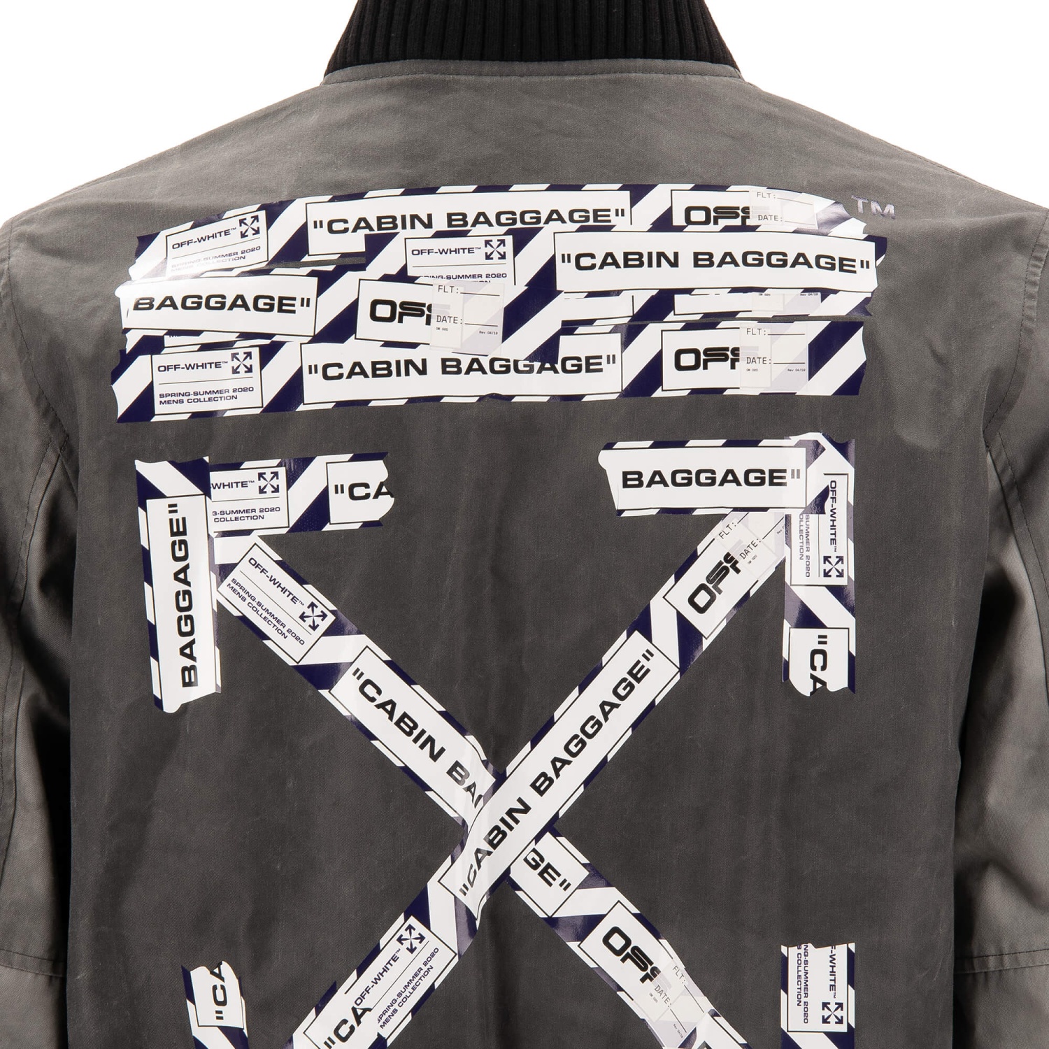 - Distressed Bomberjacke / College Jacke mit Airport Baggage Tape Applikationen an der Rückseite und Off-White Logo vorne von OFF-WHITE Virgil Abloh
