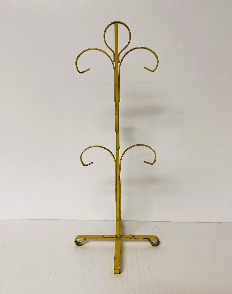 Vintage metal mug tree holds 6 mugs. Harvest gold color. Chippy paint and some rust for great aged look. Please take a look at the photos and contact me if you have any questions.