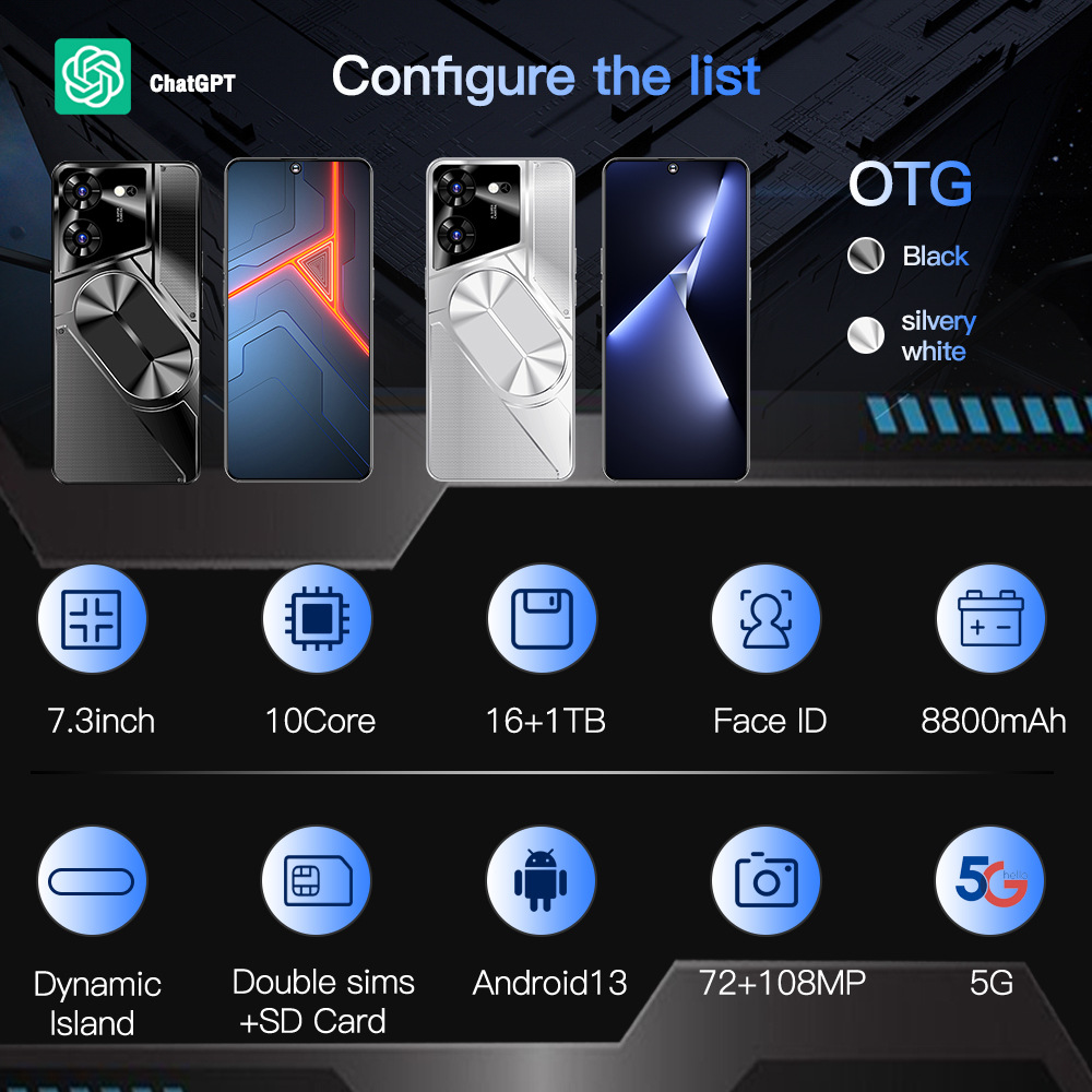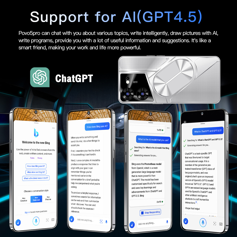 Povo5 Pro Factory Unlocked Smartphone 7.3" 5G Android Dual SIM Cell Phones OTG