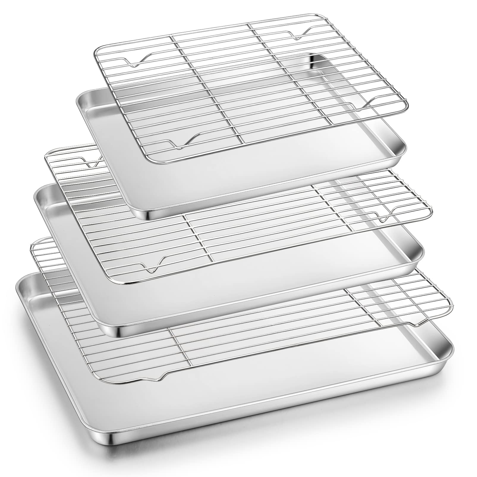 Baking Sheet and Cooling Rack Set (3 Pans + 3 Racks), Stainless Steel Cookie Sheet with Roasting Racks for Cooking/Cooling, Healthy & Dishwasher Safe, Sturdy & Long Lasting