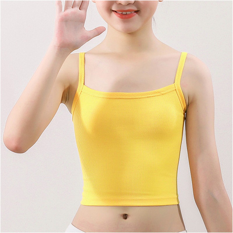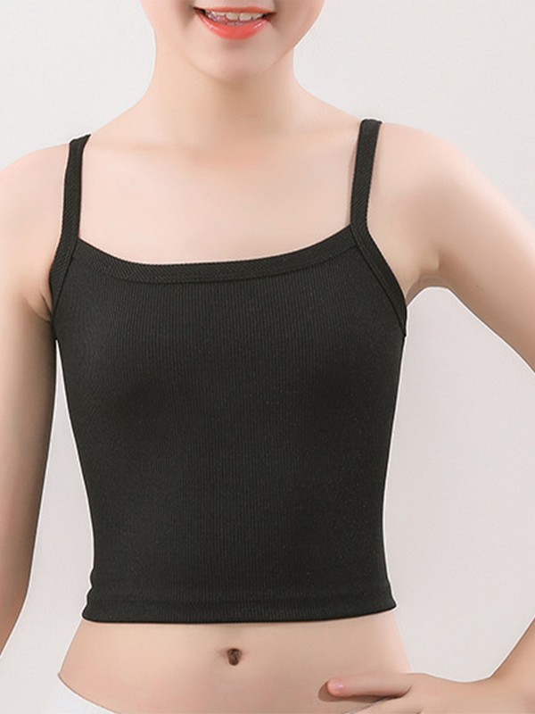 Casual and cute camisole for girls, spaghetti straps, ribbed design, solid color, cropped length, slim fit.