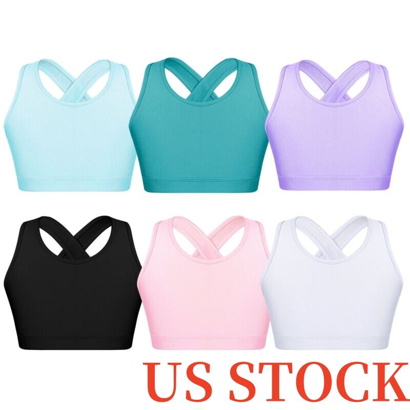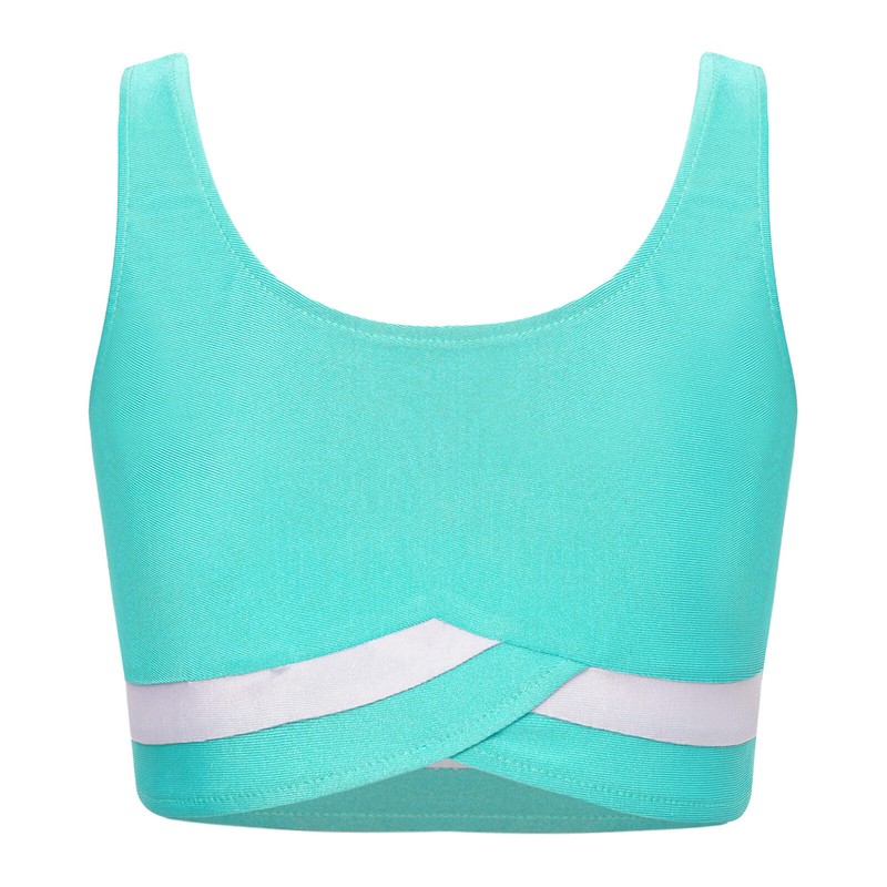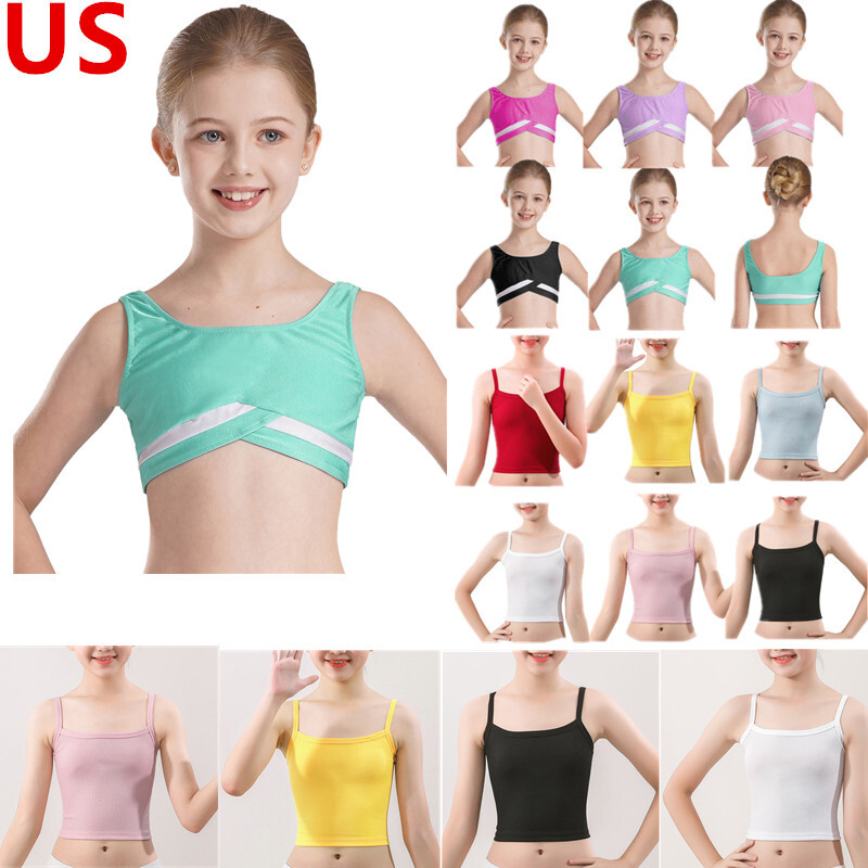 Spaghetti straps vest for kids girls, ribbed design, solid color, cropped length.