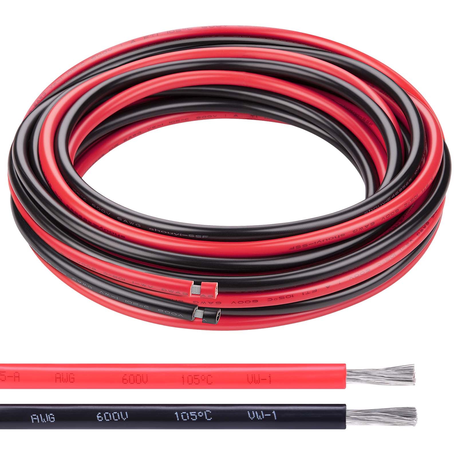 6 AWG Electrical Wire - 20FT Red & 20FT Black Tinned Copper Cable for Car Audio Automotive Trailer Marine, PV Wire for Low Voltage LED Light (6AWG 20FT Red + 20FT Black)