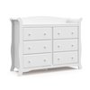 The Storkcraft Avalon 6-Drawer Double Dresser is a spacious nursery and bedroom storage solution, featuring classic sleigh-style looks and ample storage. Crafted with wood framing and wood composites, this durable double dresser features 6 spacious drawers, durable steel hardware, Euro-glide drawers with safety stops for dependable and reliable construction. The Avalon meets or exceeds all applicable ASTM International and CPSC safety standards, and complies with all applicable federal anti-tipping standards. For additional nursery or bedroom storage, complete the Storkcraft Avalon collection with the matching Avalon 5-Drawer Dresser. Exclusively from Storkcraft, proud recipient of the 2023 Women's Choice Award for 9 out of 10 Customer Recommended Baby & kids furniture.