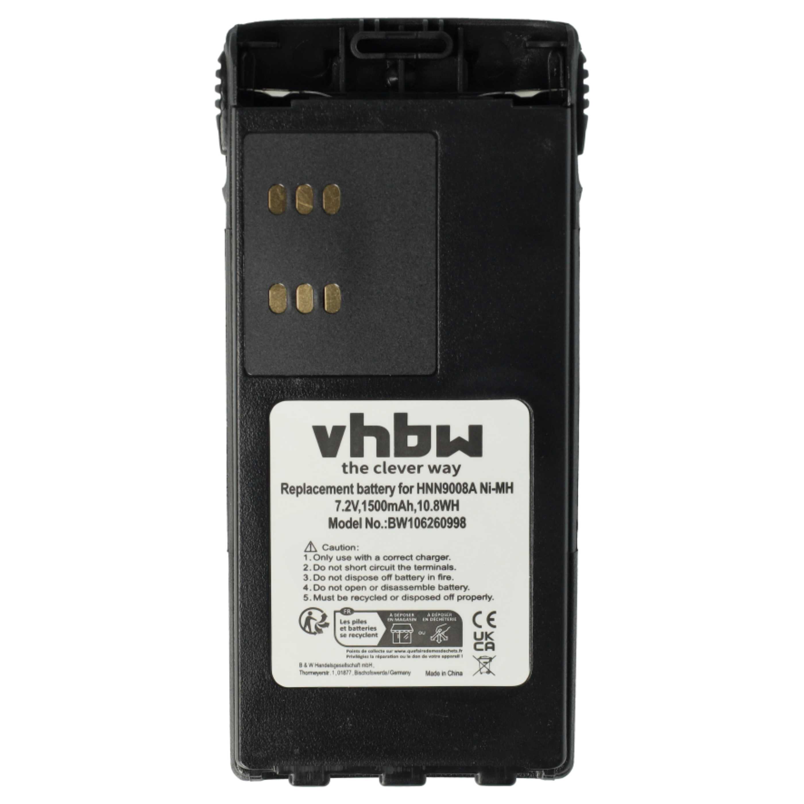 vhbw 2x Leistungsfähiger Ersatz-Akku für Motorola GP338, GP339, GP329, GP330, GP340, GP360, GP380 Funkgerät oder Walkie-Talkie (NiMH, 1500mAh, 7,2V)