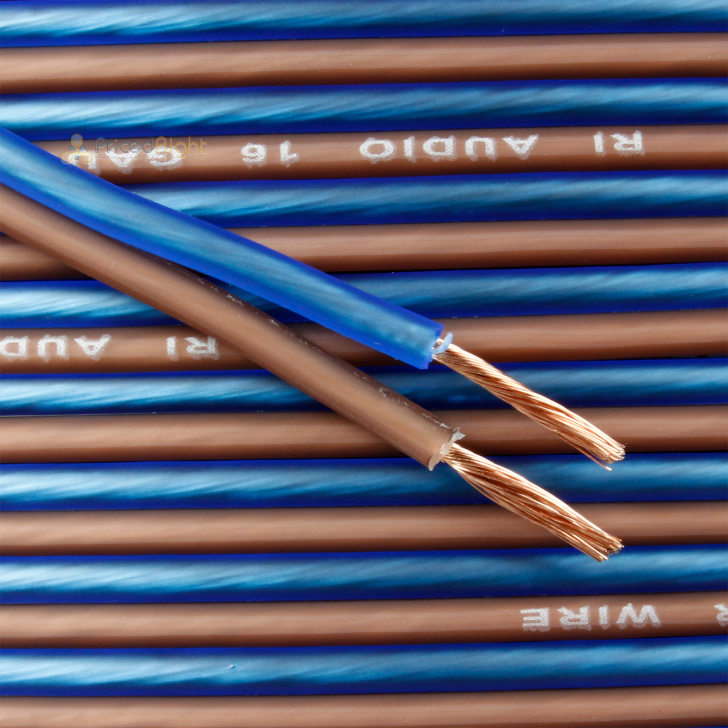 Are you in the market for high quality super flexible speaker wire? This wire manufactured by RI Audio is the solution. This is a 50 foot section of true 16 gauge AWG speaker wire for car and home audio. Made up of two 16 gauge wires separated by a blue and brown outer casing to easily decipher wires between positive and negative during installation. This wire can easily be pulled apart into two separate strands if needed. This wire is made out of CCA (Copper Clad Aluminum). Any sections less than 500 feet will be cut off the spool and shipped in a bulk bundle.