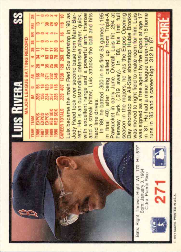 | 1991 Score MLB 271 Luis Rivera | ||||||||||||||||