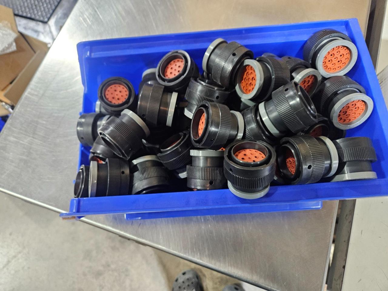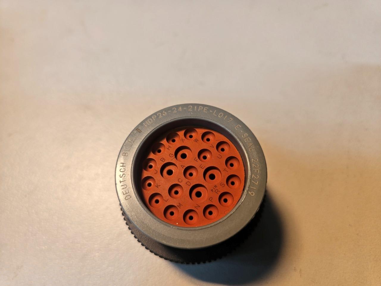 Here are some new Deutsch HDP26-24-21PE-L017 circular 21 position connectors. These are new in bulk bin as shown. Each purchase is for one connector. Discounts available for large quantity purchases.