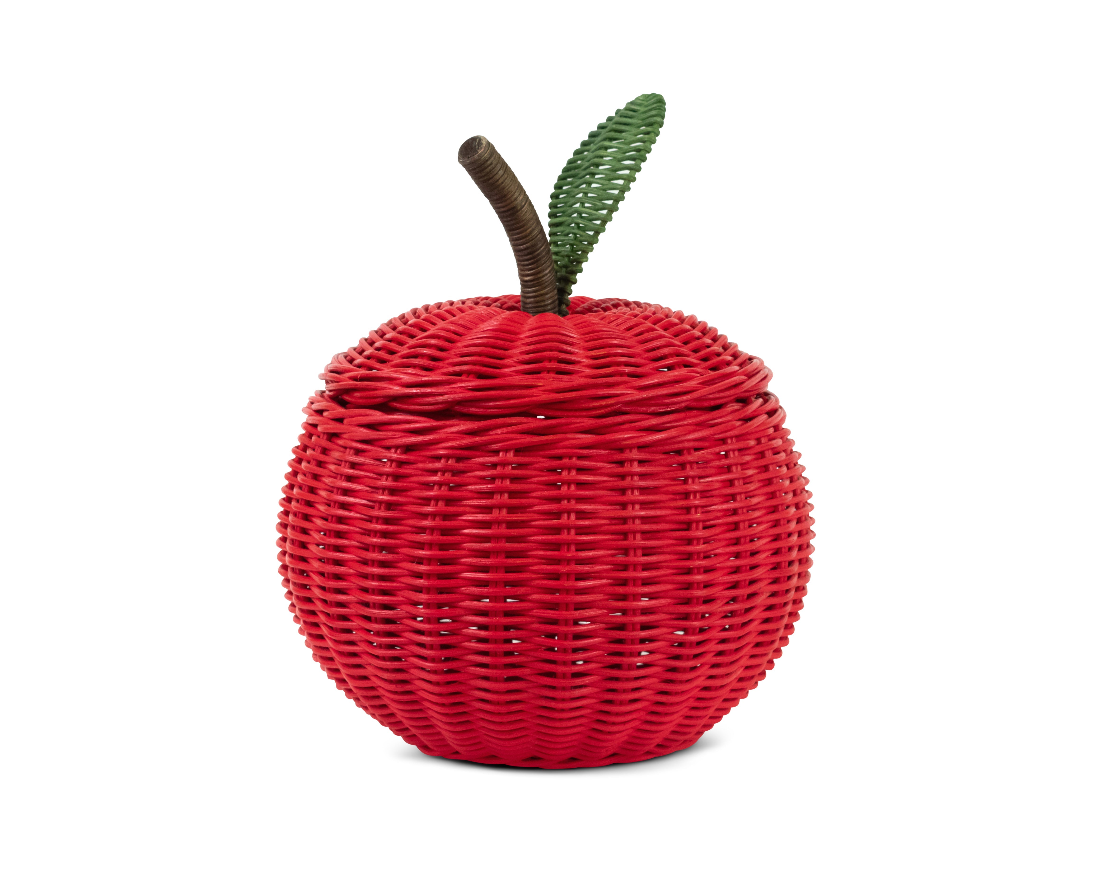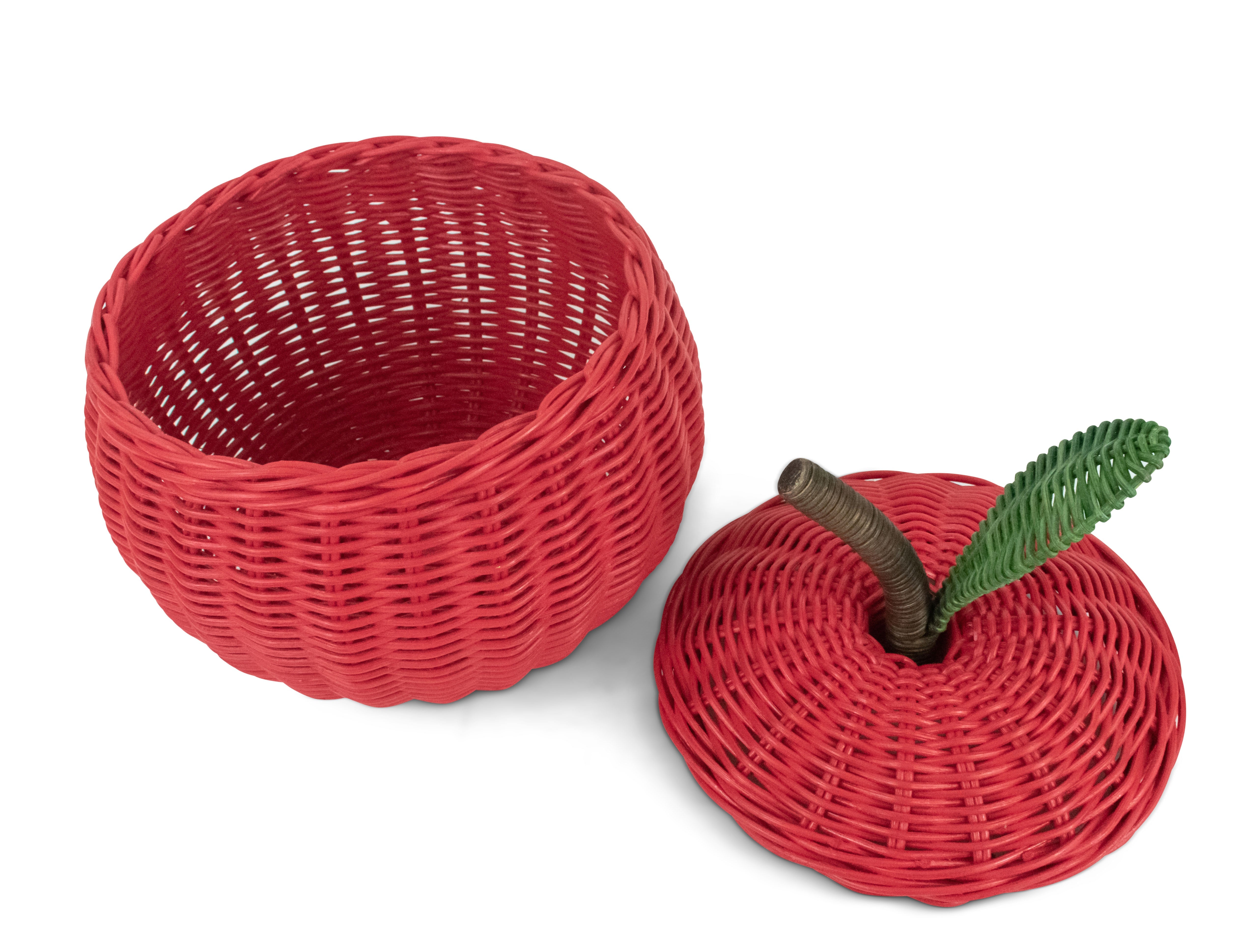 Soon to be the apple of your eye, this handmade fruit shaped basket is both decorative and durable. A unique teacher gift or kitchen accessory, the red rattan apple basket with lid can be used at home or in the classroom. Its hollow core is best used to store office supplies or apples picked fresh from the orchard.