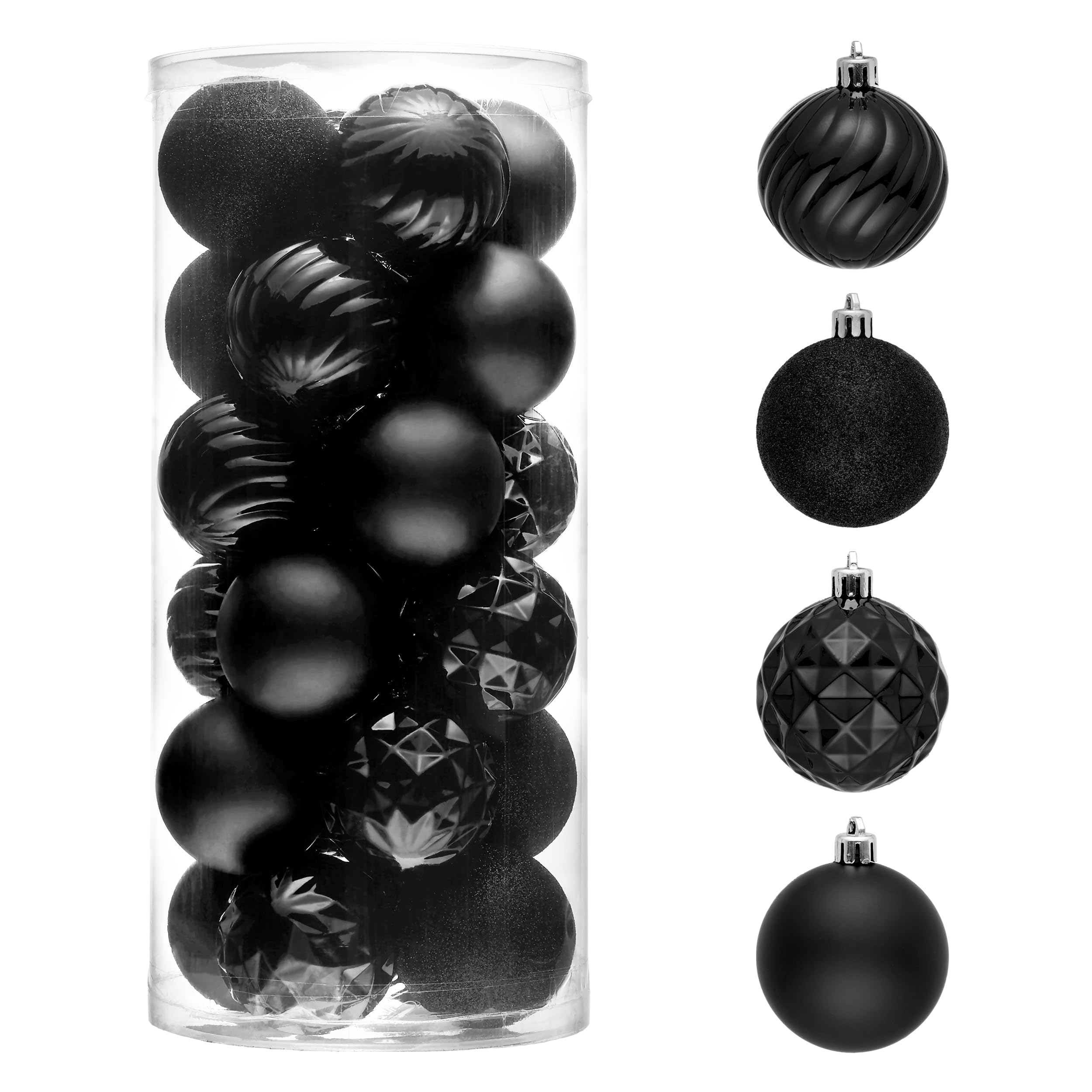 Christmas Tree Decorations Ornament Set for Fall Halloween Decor, 24ct Black Shatterproof Christmas Ball Ornaments Bulk, 2.36 Inches Hanging Decor for Xmas Holiday Party