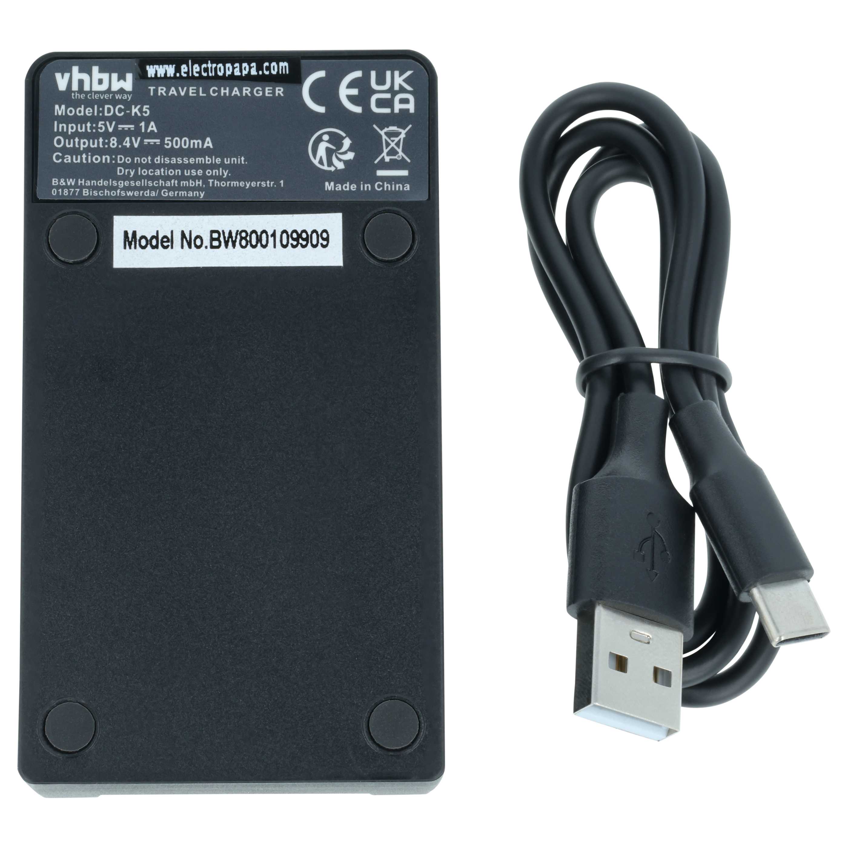 vhbw Ladegerät, Ladeschale USB-C für JVC GZ-MG435BEX, GZ-MG465, GZ-MG435, GZ-MG365HEX Spiegelreflexkamera-, Systemkamera-, Actioncam-Akkus inkl. USB auf USB-C Ladekabel