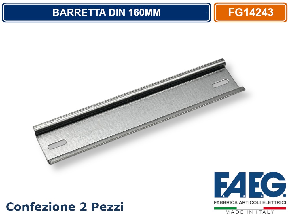FAEG Binario Guida DIN OMEGA 160mm in metallo zincato per centralini 8 moduli.