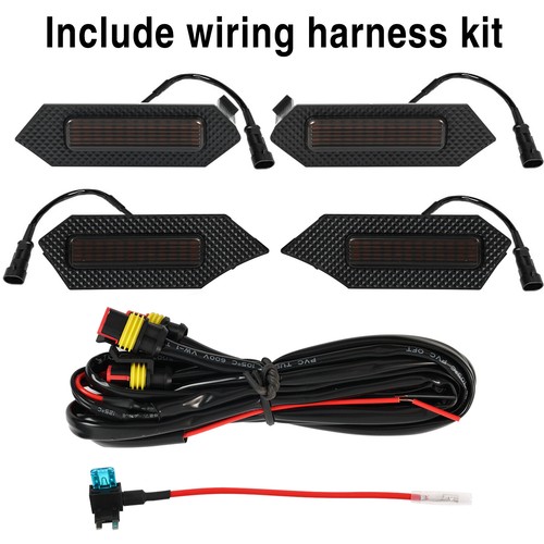 Package Include: 4 Pcs led grille lights, 1 Set 4 in 1 wiring harness, 1 fuse.