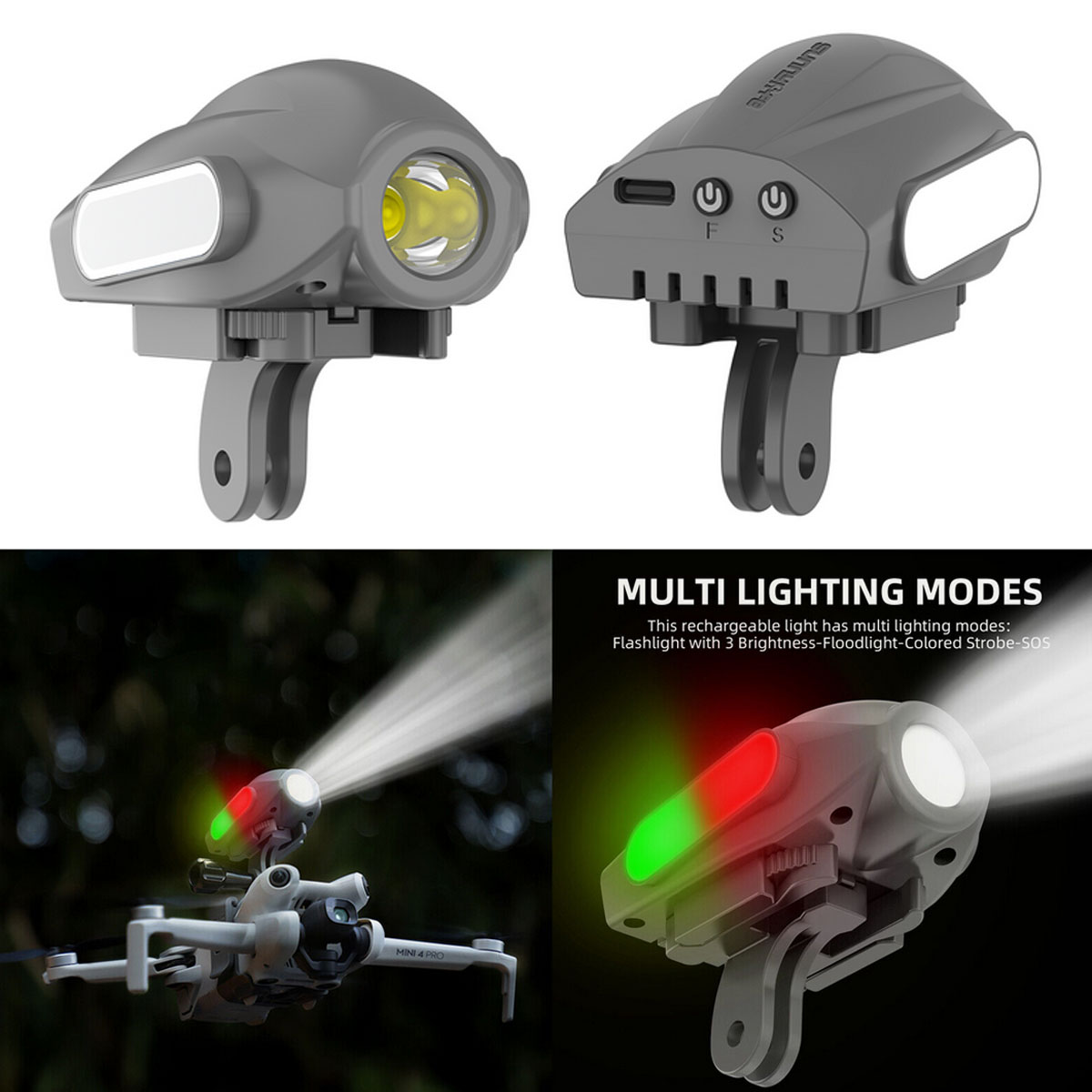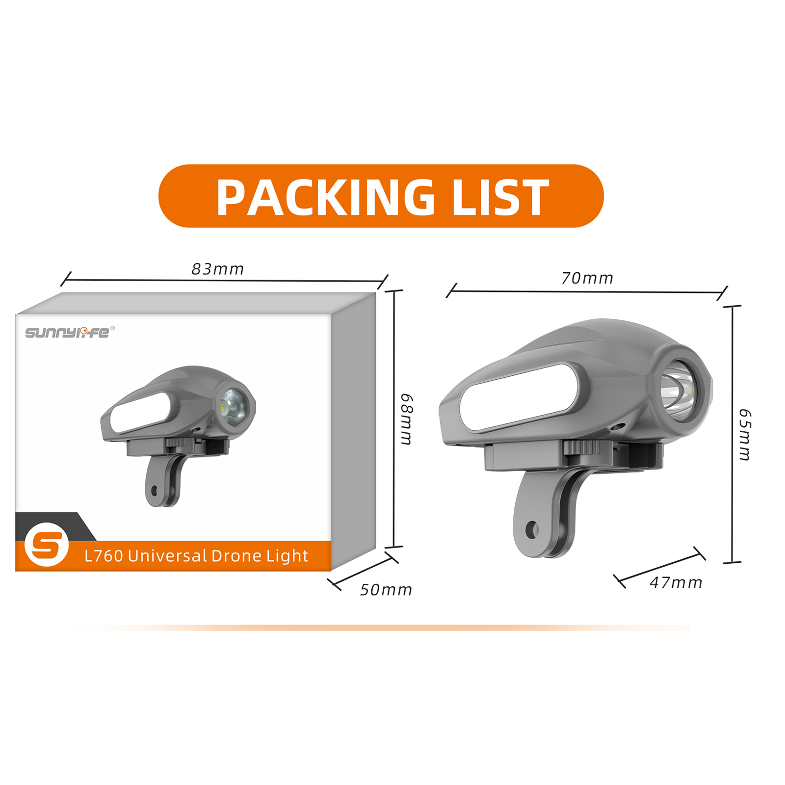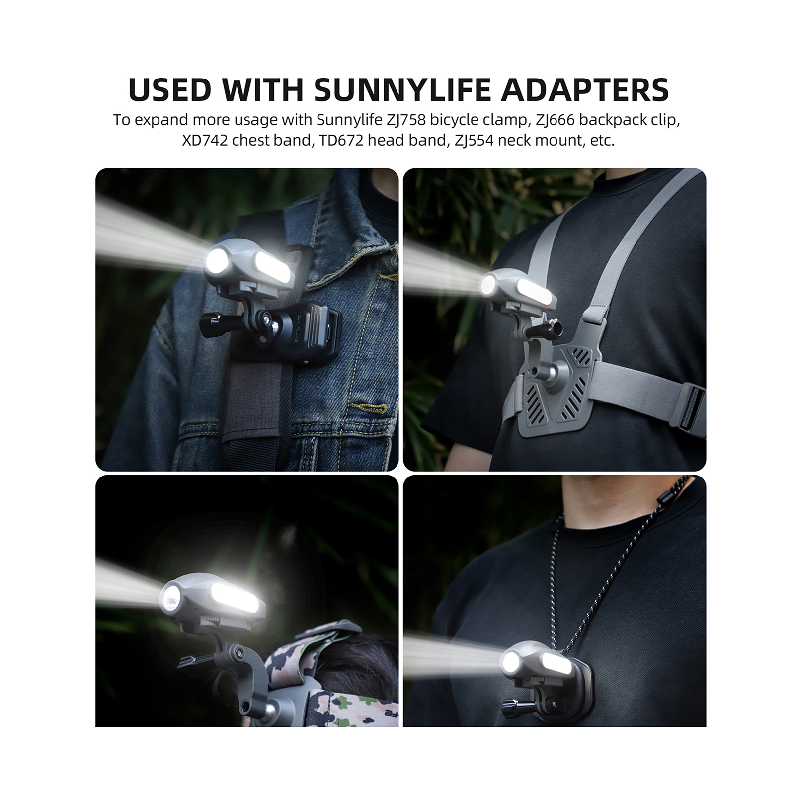 Features: l Far-beam, floodlight, burst flash, SOS multi-function in one. Front far-fire searchlight, side white floodlight and red and green flash light, to adapt to the needs of different scenes l The longest range up to 100m, night searchlight, strong light far, far away can also be seen l 1100mAh large capacity, up to 10 hours of strong battery life. Adopt high-capacity rechargeable battery, durable, no longer worry about insufficient power l Match with Sunnylife accessories to expand more uses. Works with ZJ758 Riding Bracket, ZJ666 Backpack Clip, XD742 Chest Strap, TD672 Headband, ZJ554 Magnetic Neck Bracket and more Specification: l Type: Universal l Size: 7 x 6.5 x 4.7 cm l Quantity: 1 PCS Package: l 1x Searchlight