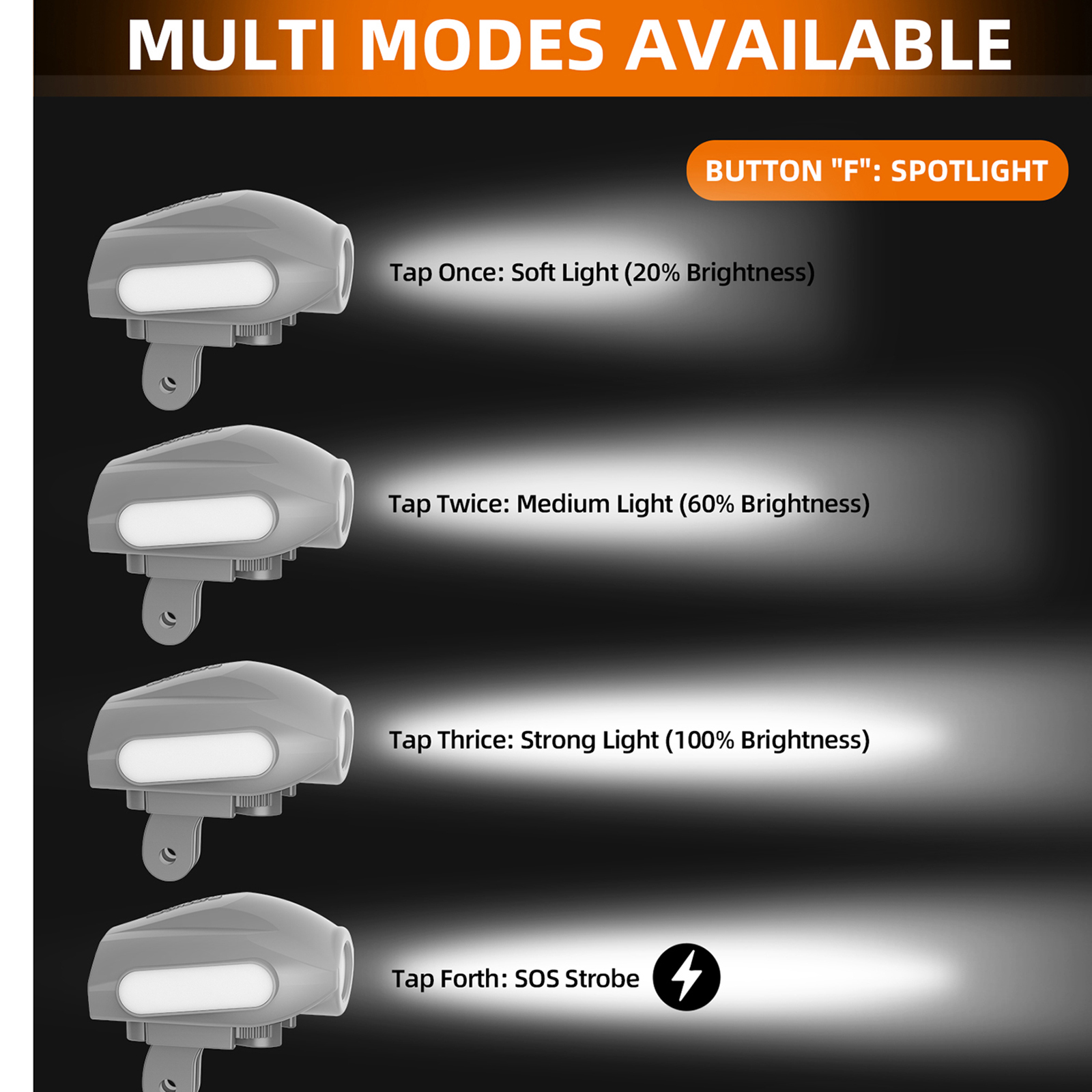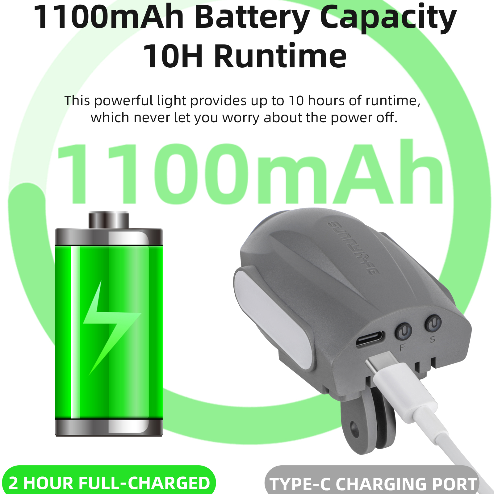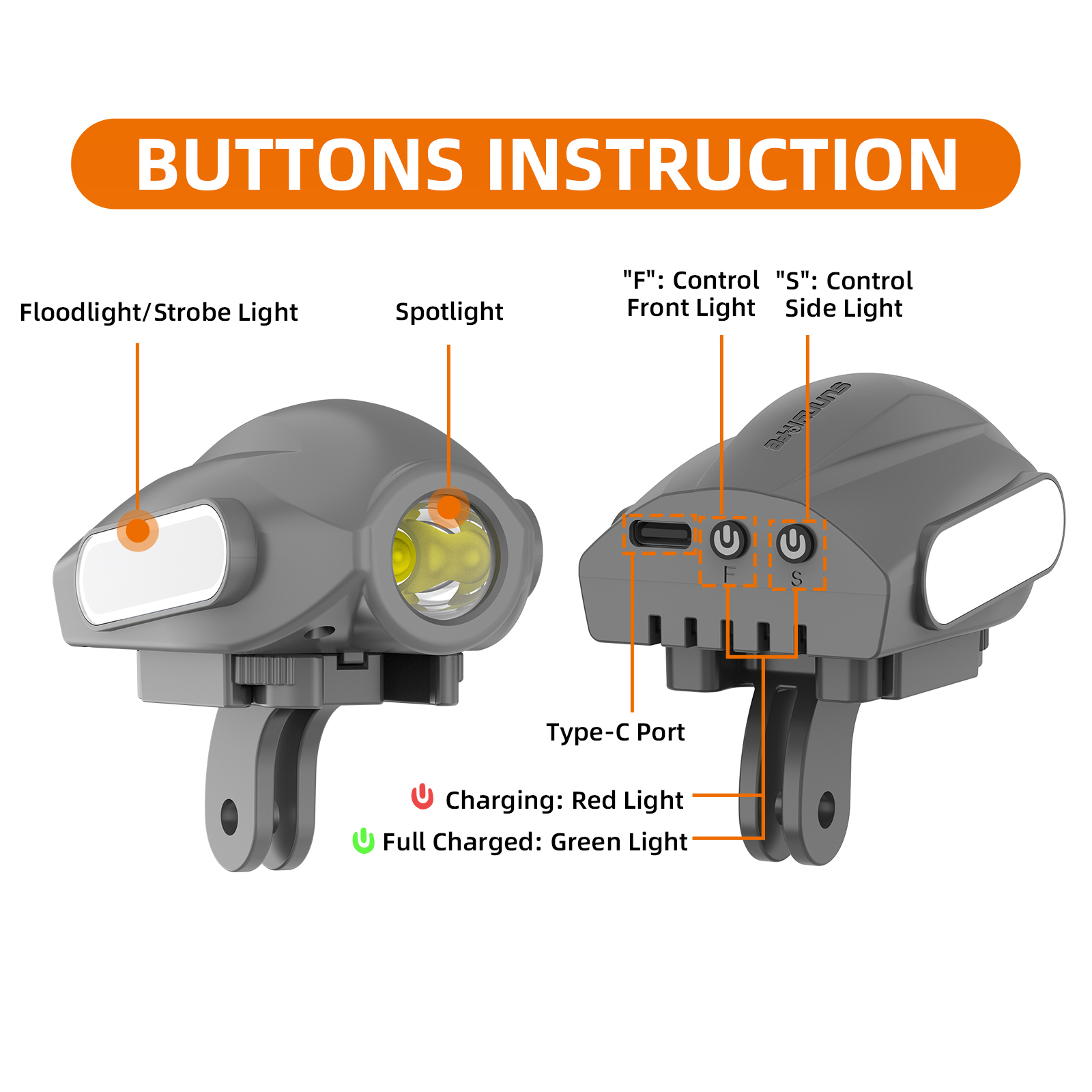 Features: l Far-beam, floodlight, burst flash, SOS multi-function in one. Front far-fire searchlight, side white floodlight and red and green flash light, to adapt to the needs of different scenes l The longest range up to 100m, night searchlight, strong light far, far away can also be seen l 1100mAh large capacity, up to 10 hours of strong battery life. Adopt high-capacity rechargeable battery, durable, no longer worry about insufficient power l Match with Sunnylife accessories to expand more uses. Works with ZJ758 Riding Bracket, ZJ666 Backpack Clip, XD742 Chest Strap, TD672 Headband, ZJ554 Magnetic Neck Bracket and more Specification: l Type: Universal l Size: 7 x 6.5 x 4.7 cm l Quantity: 1 PCS Package: l 1x Searchlight