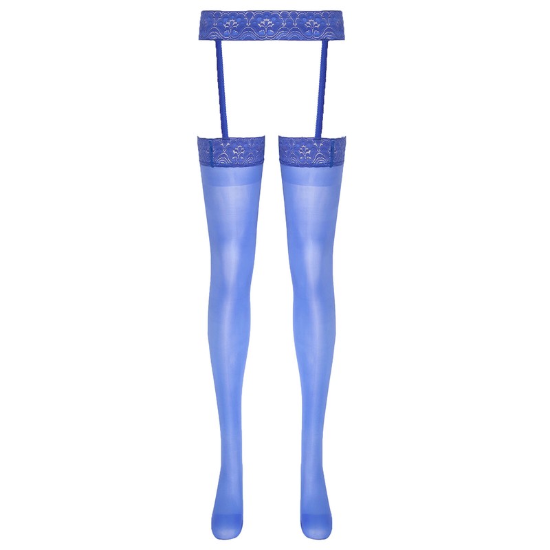 The see-through stockings are designed with floral lace garter belt, shows your legs slender and makes you more attractive.