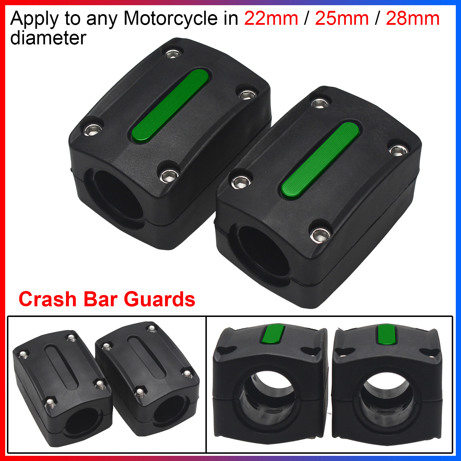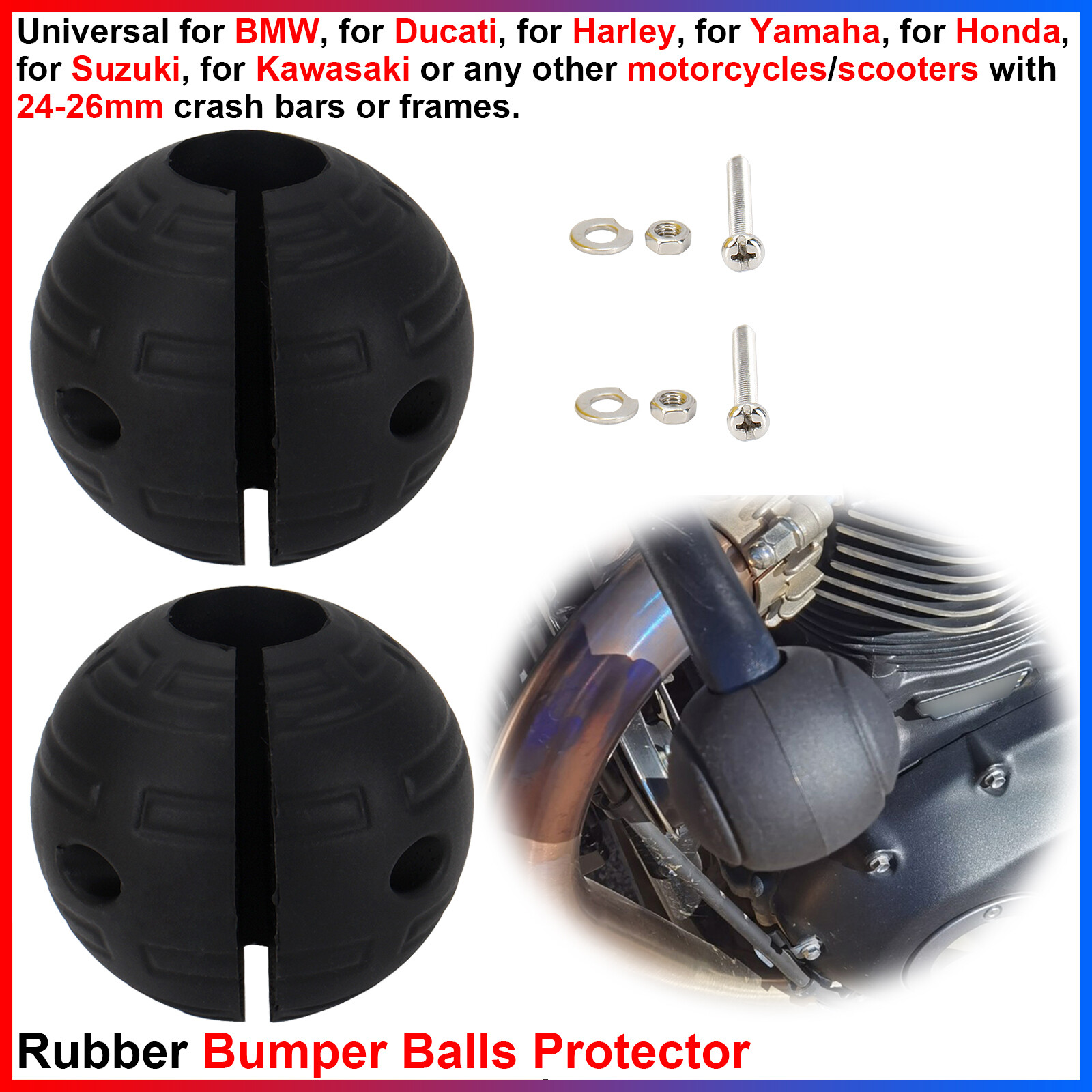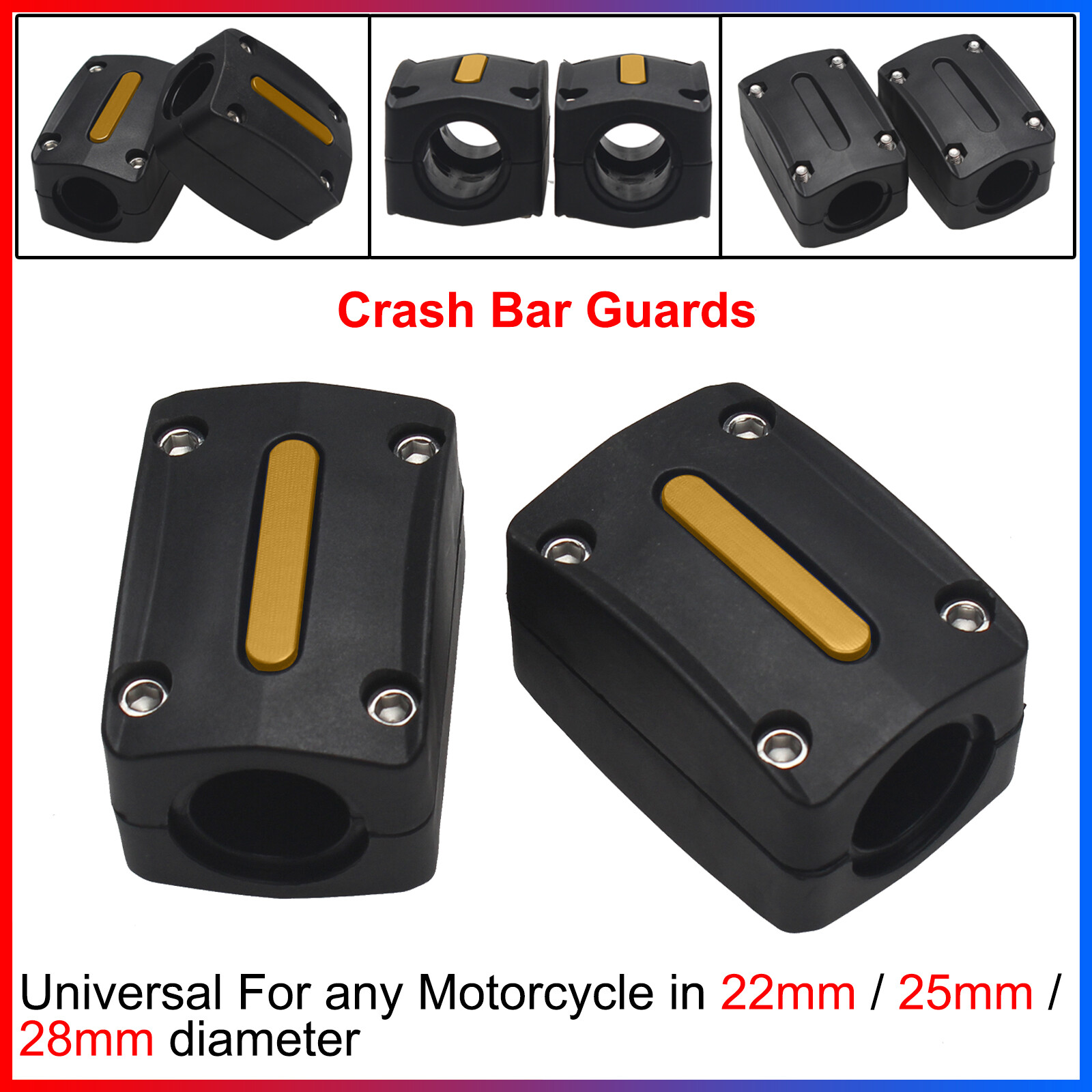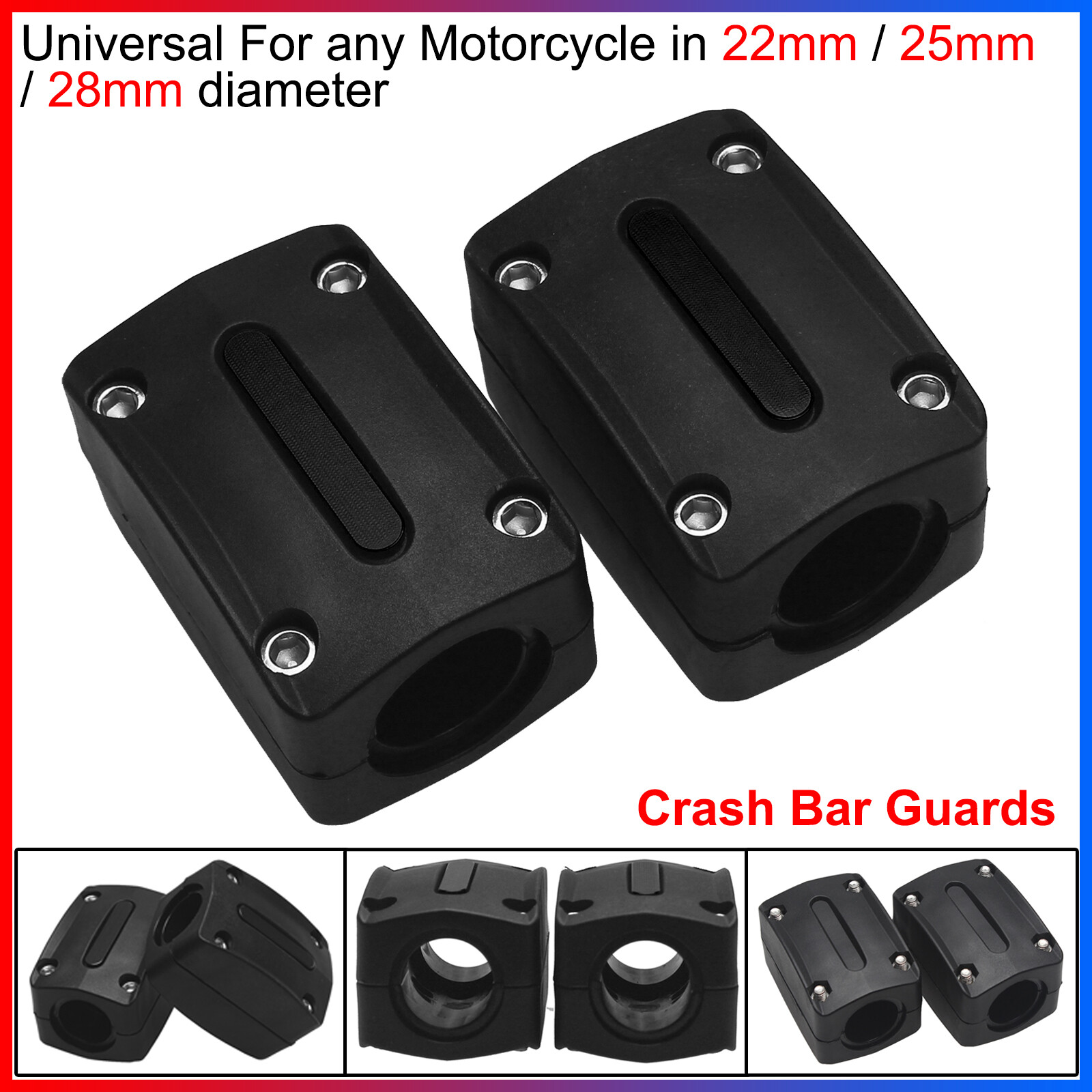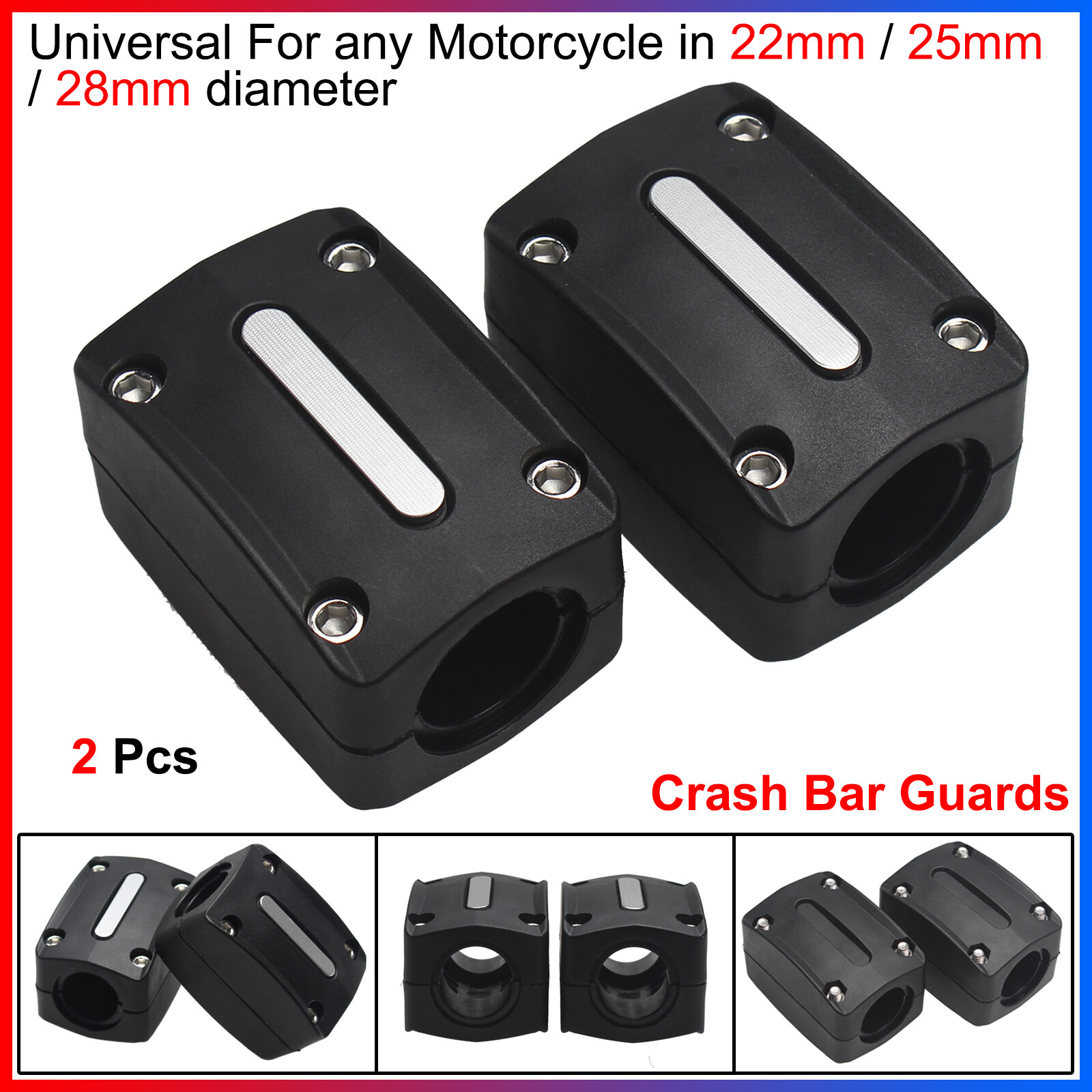 Can be mounted on the engine guards, the side pannier bars or saddle bag bars.