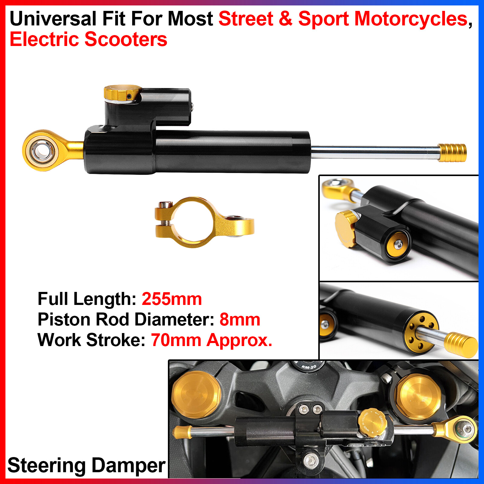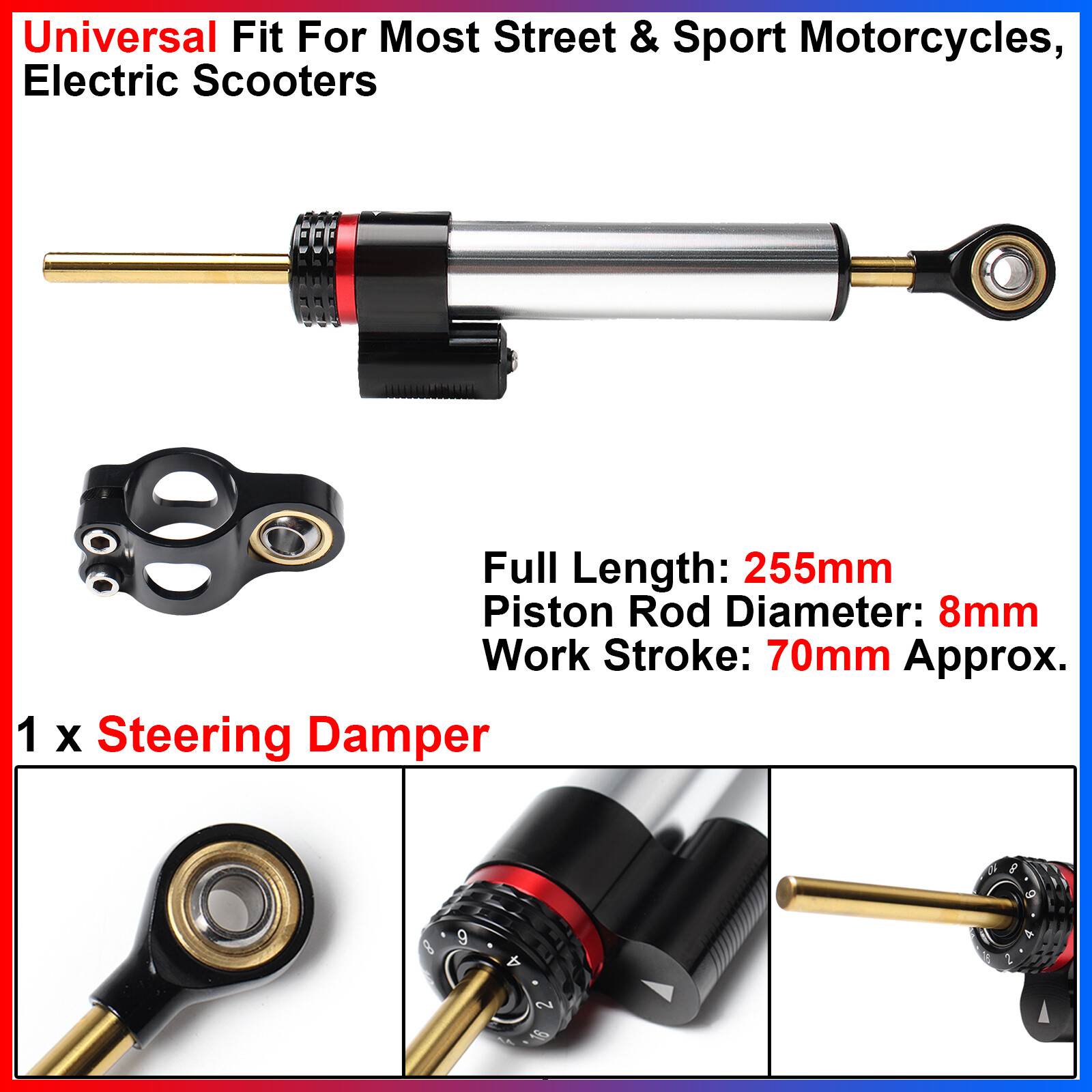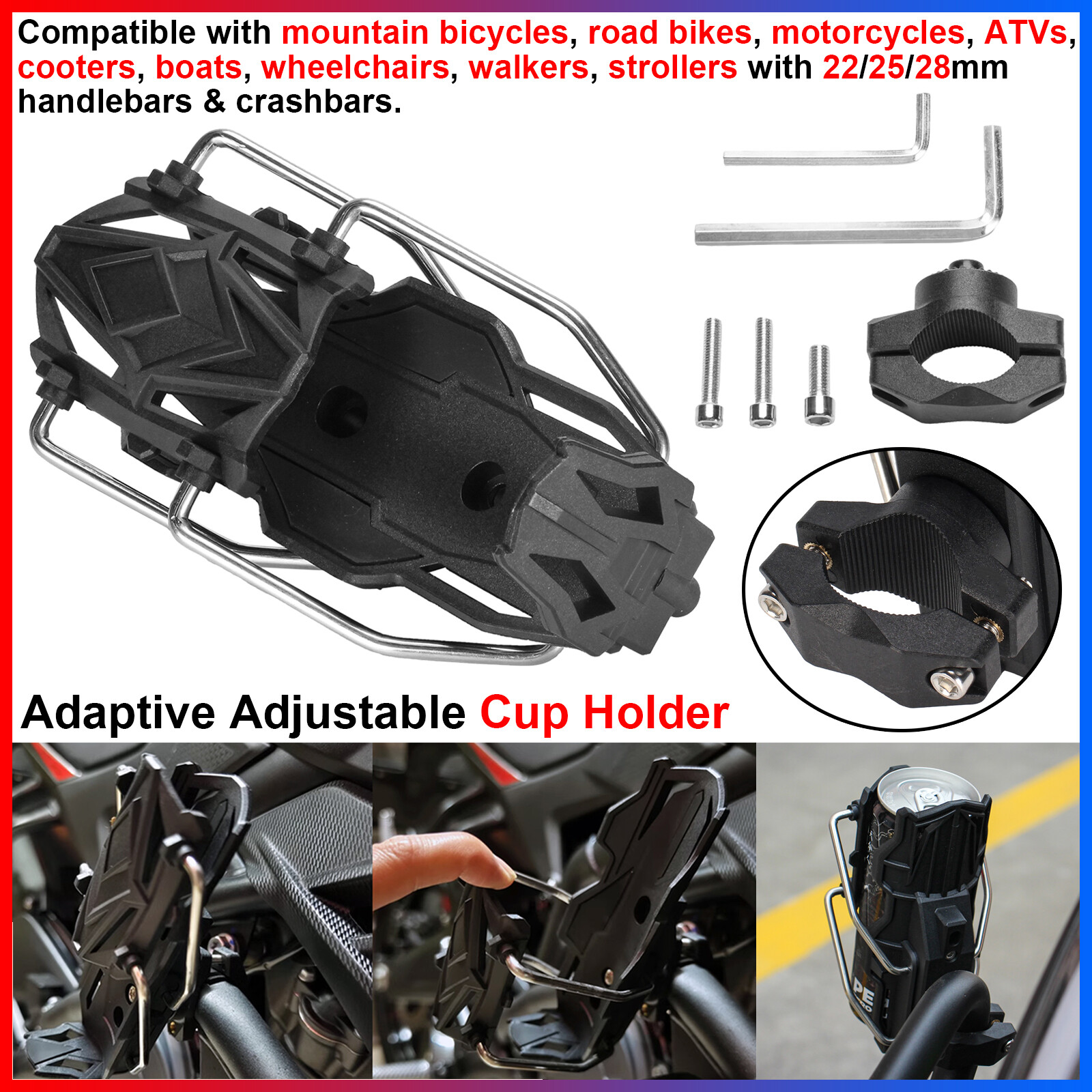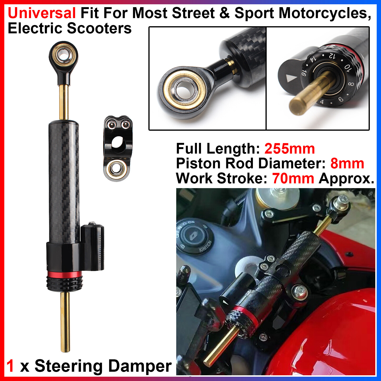 Universal fit for most motorcycles, scooters, ATV/UTVs, bicycles, etc.