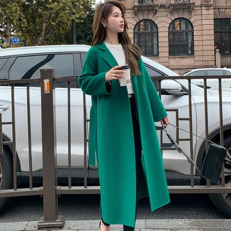 Winter Female Designer Lace Up Bowknots Mid-Long Thermal Woolen Coat Lady Fashion Concise Solid Color Daily Coat Jackets
