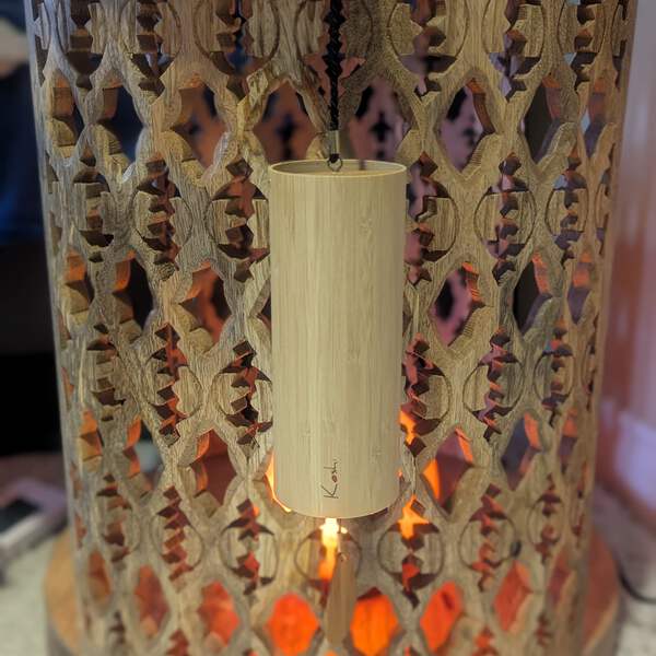 The Koshi Chime Ignis, representing the vibrant and transformative element of Fire, offers a warm, dynamic, and uplifting sound. Tuned to a powerful pentatonic scale (G B D G B D G A), its notes resonate with a lively energy, much like the flickering of a flame. This unique chime brings a spark of warmth and passion to its surroundings. Handcrafted in the Pyrenean mountains, the Ignis chime is ideal for moments of inspiration, to ignite creativity, or to add a touch of fiery energy to your space.