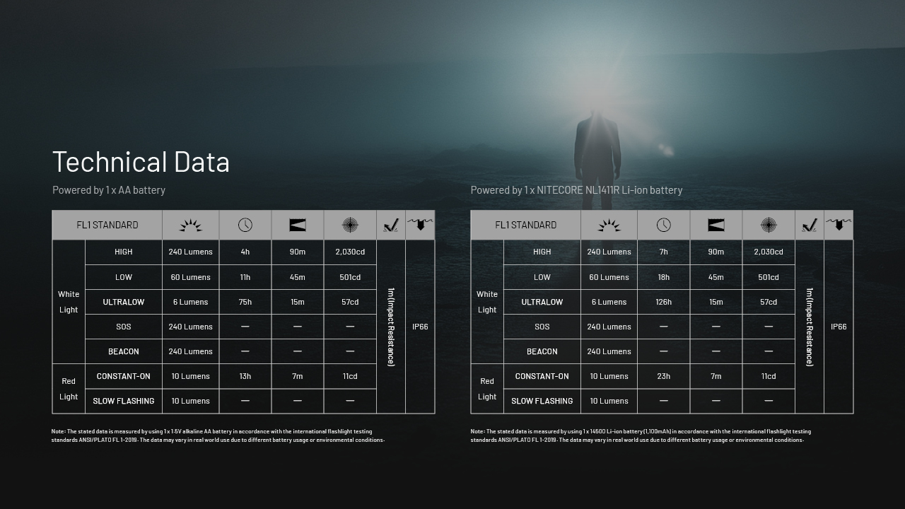 The Nitecore HA11 UHE is a lightweight and versatile AA-powered headlamp, making it the perfect companion for activities like daily tasks, camping, hiking, running, and more. With its included AA battery, it delivers a bright 240 lumen beam that reaches up to 98 yards, and for extended runtime, you can use a Nitecore NL1411R rechargeable battery. Compared to its predecessor, the HA11 UHE offers increased brightness, longer runtimes, and enhanced power options, making it a superior upgrade for any adventure.