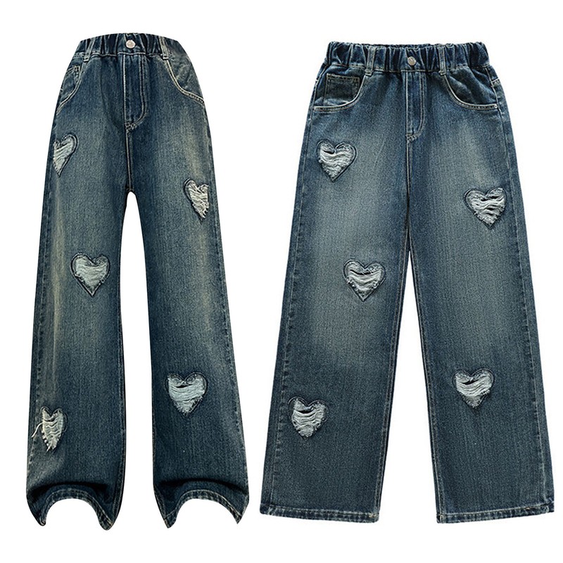 Girl’s jeans with ripped hearts and wide-leg design make your girl look both cute and stylish.