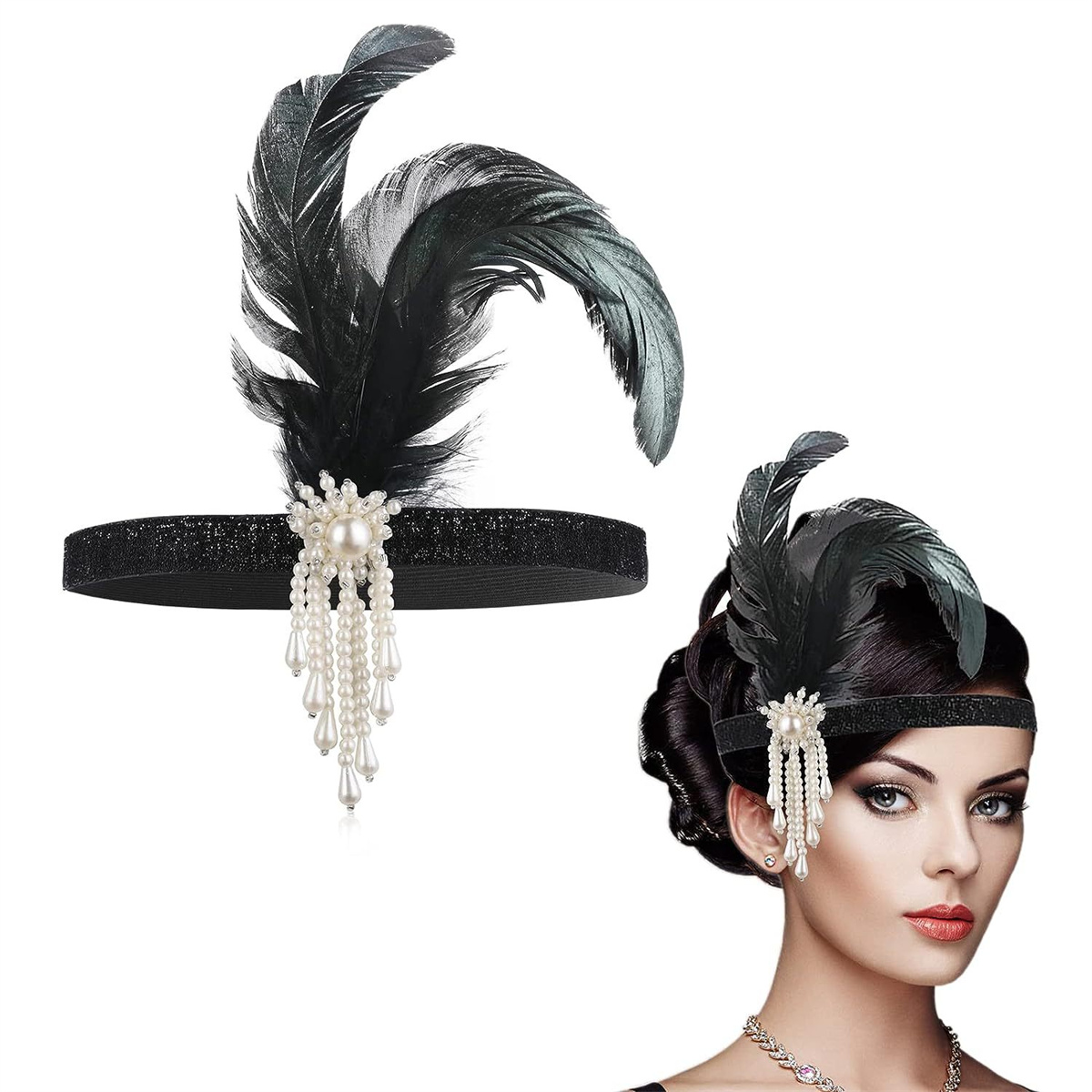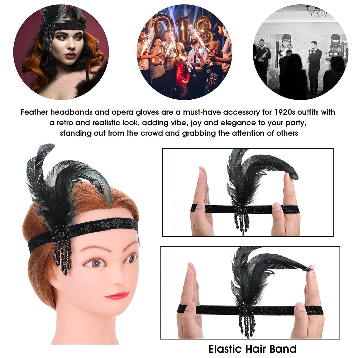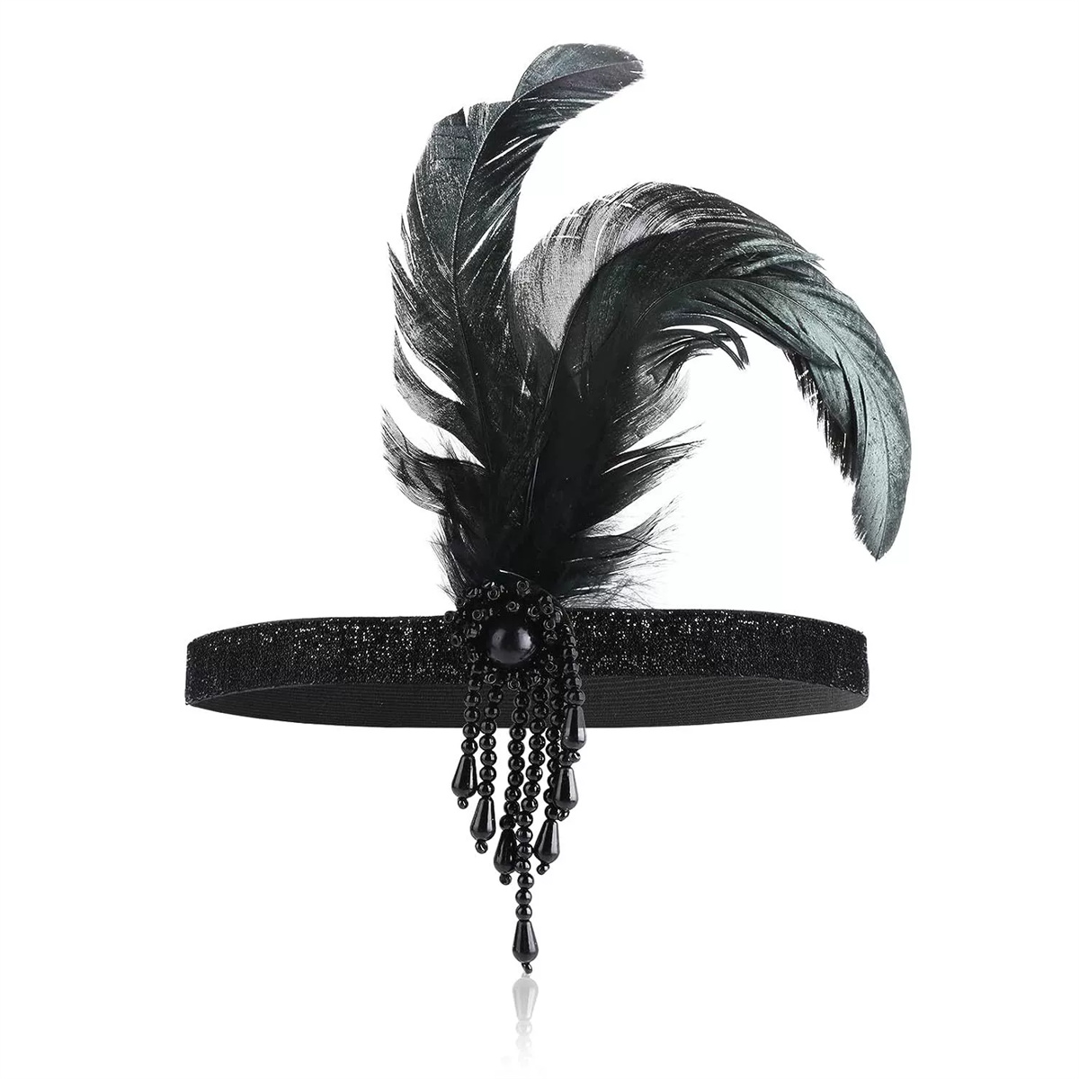 1920S Flapper Headband, Feather Headwear Headpiece Black Head Wear Gatsby Style