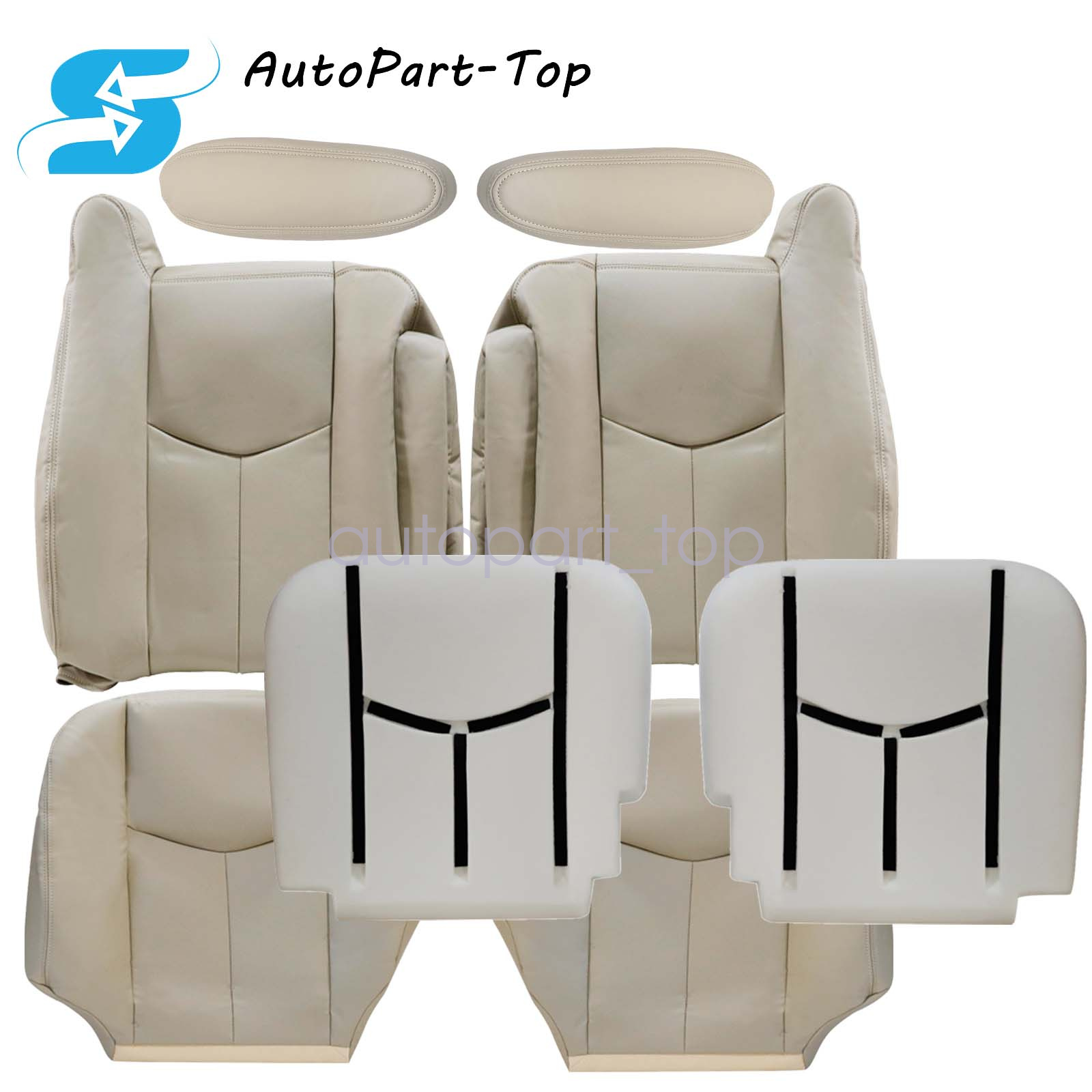 For 2003 2004 2005 2006 Chevy/GMC Tahoe Suburban & Yukon Front Driver & Passenger Replacement Leather Seat Cover & Foam Cushion & Armrest Cover Shale Light Neutral Tan Color Code 522 or 52i