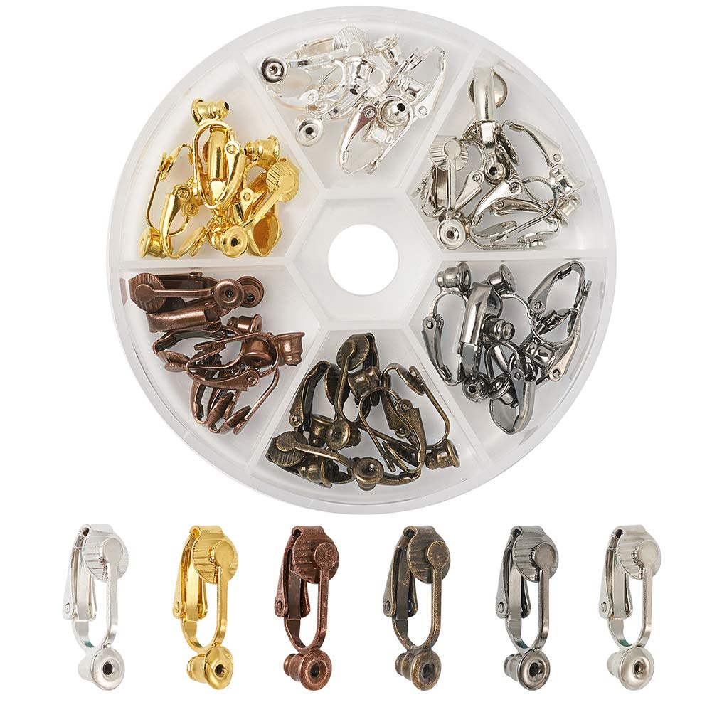 36pcs/Box 6 Colors Brass Stud to Clip on Earring Converter 19x6mm for Non-Pierced Ears