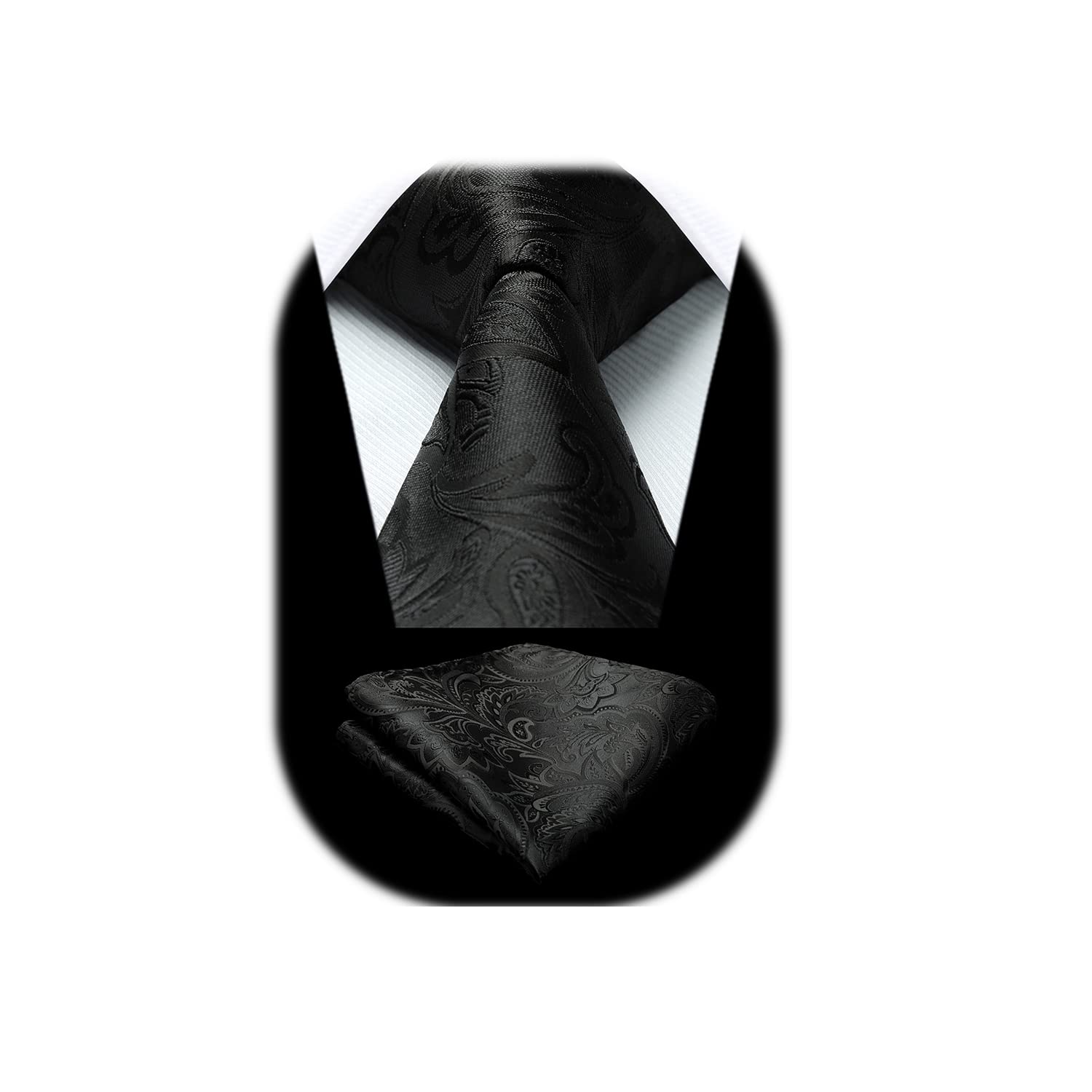 Paisley Black Tie Handkerchief Woven Classic Men's Necktie Pocket Square Set Business Formal Wedding Party