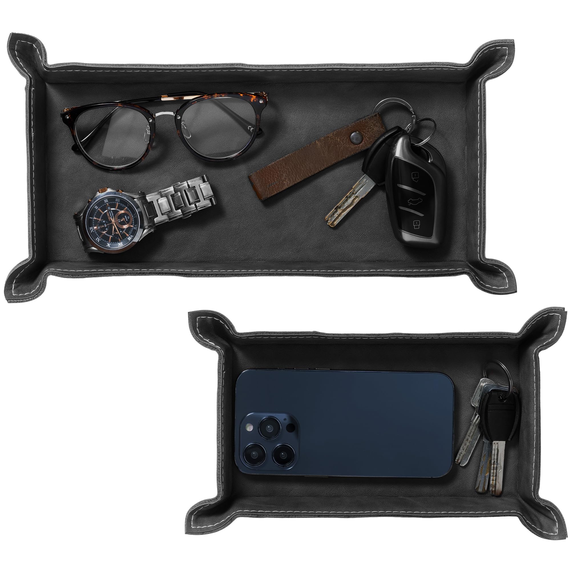 Faux Leather Valet Tray Set of 2, Catch All Tray, Key Tray for Entryway Table, Nightstand Tray, Catchall for Keys, Watch, Remote, , Valet Tray for Men, Mens Valet Tray