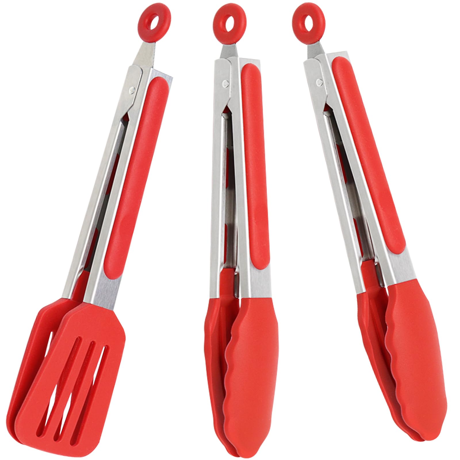 Set Includes: You will get three red 9 inch silicone cooking tongs, two food tongs, and a spatula tong. Small kitchen tongs are enough to meet your cooking needs. Kitchen tongs set are enough for personal service at the buffet or table