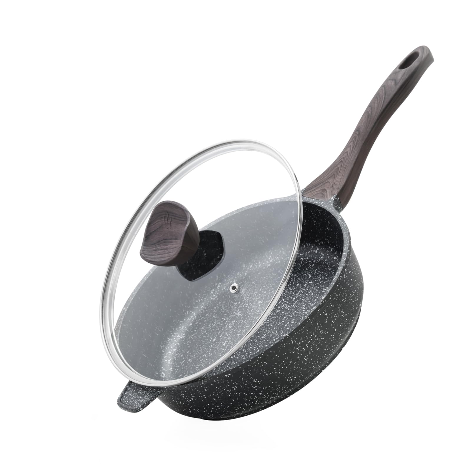 【Premium Non-Stick Coating】: Our sauté pan features a safe and healthy non-stick coating, SGS approved, and free from PFOA; enjoy effortless cooking with minimal oil for a healthier diet; the granite non-stick coating ensures a smokeless and safe cooking experience