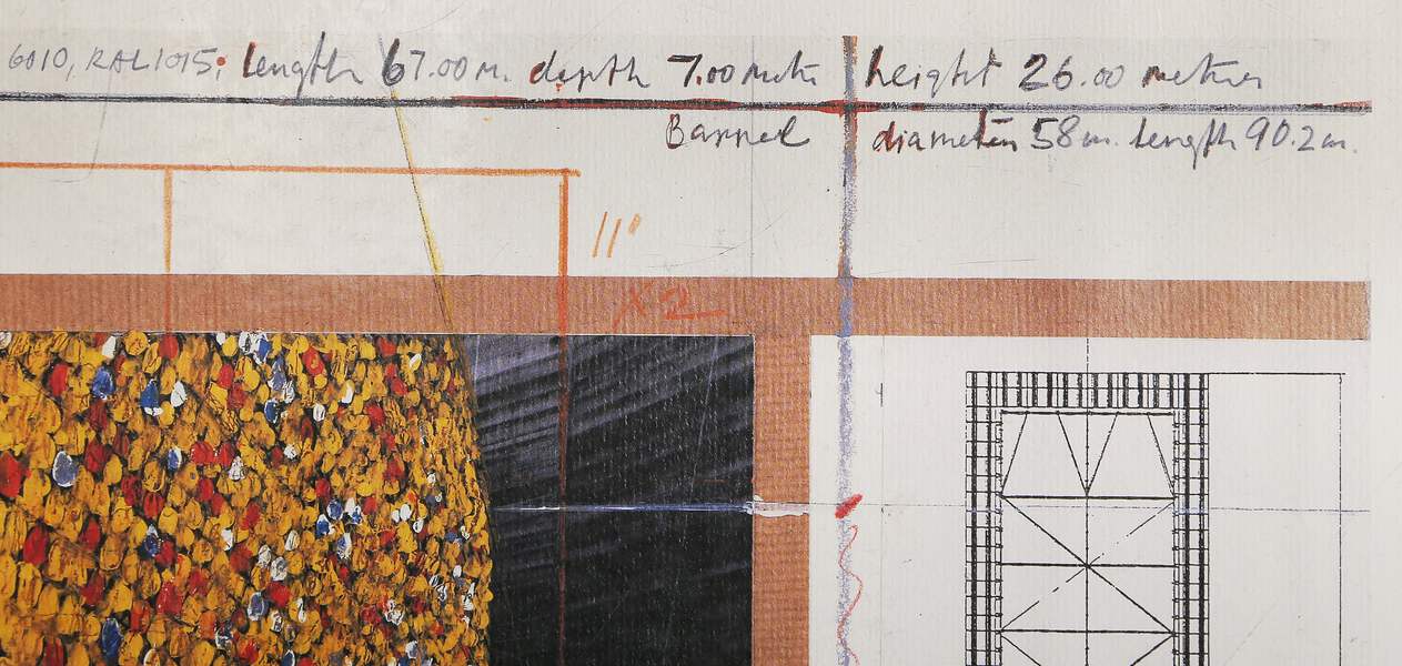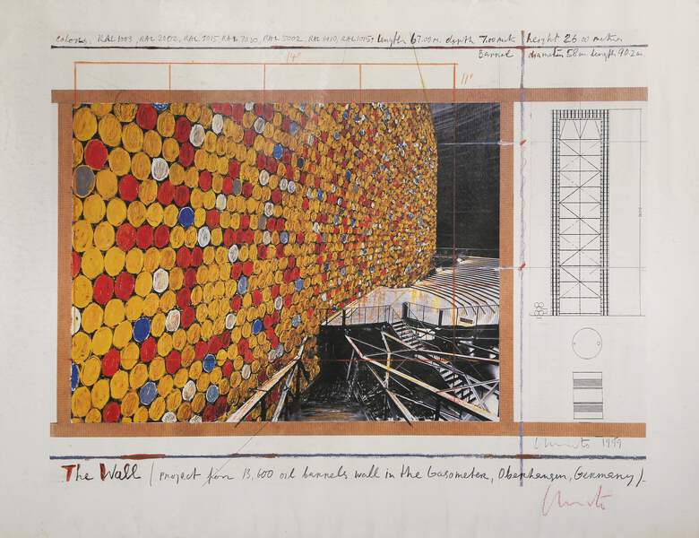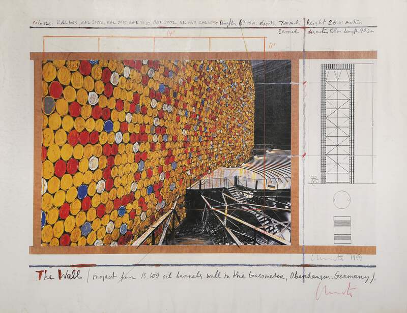 Christo and Jeanne-Claude, Bulgarian (1935 - 2020) - The Wall. Year: 1999, Medium: Poster, signed in color pencil lower right, Size: 19.25 x 24.75 in. (48.9 x 62.87 cm)