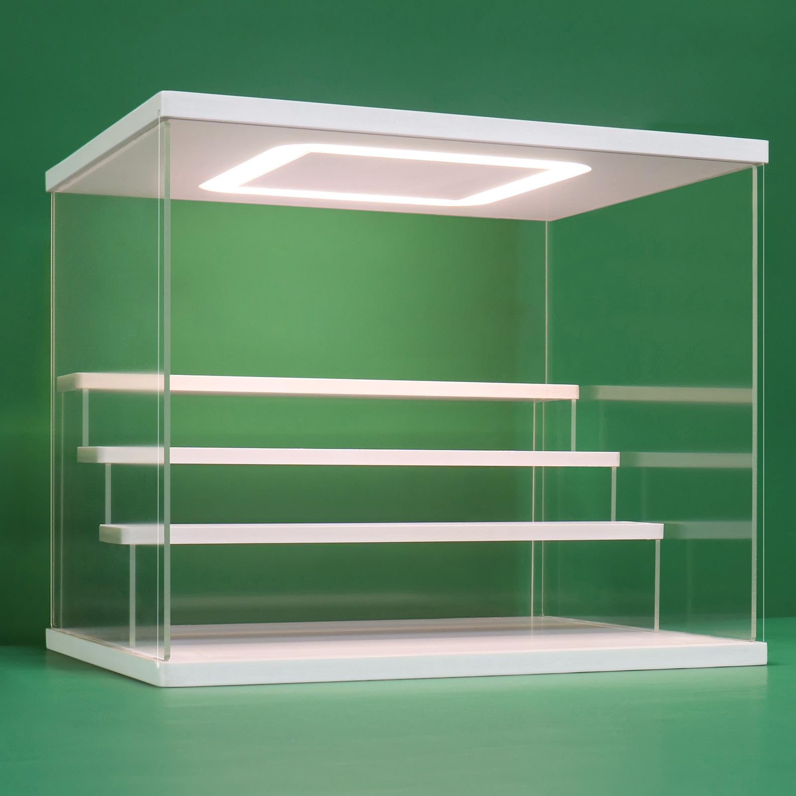 【4 Tier Clear Showcase with Led light】The display shelves has sliding doors, which are easy to open to keep the collection dust-free, reduce sunlight and ultraviolet radiation, and delay plastic aging. Led lights makes your treasured collectibles go from plain on the shelf to being highlighted beautifully.